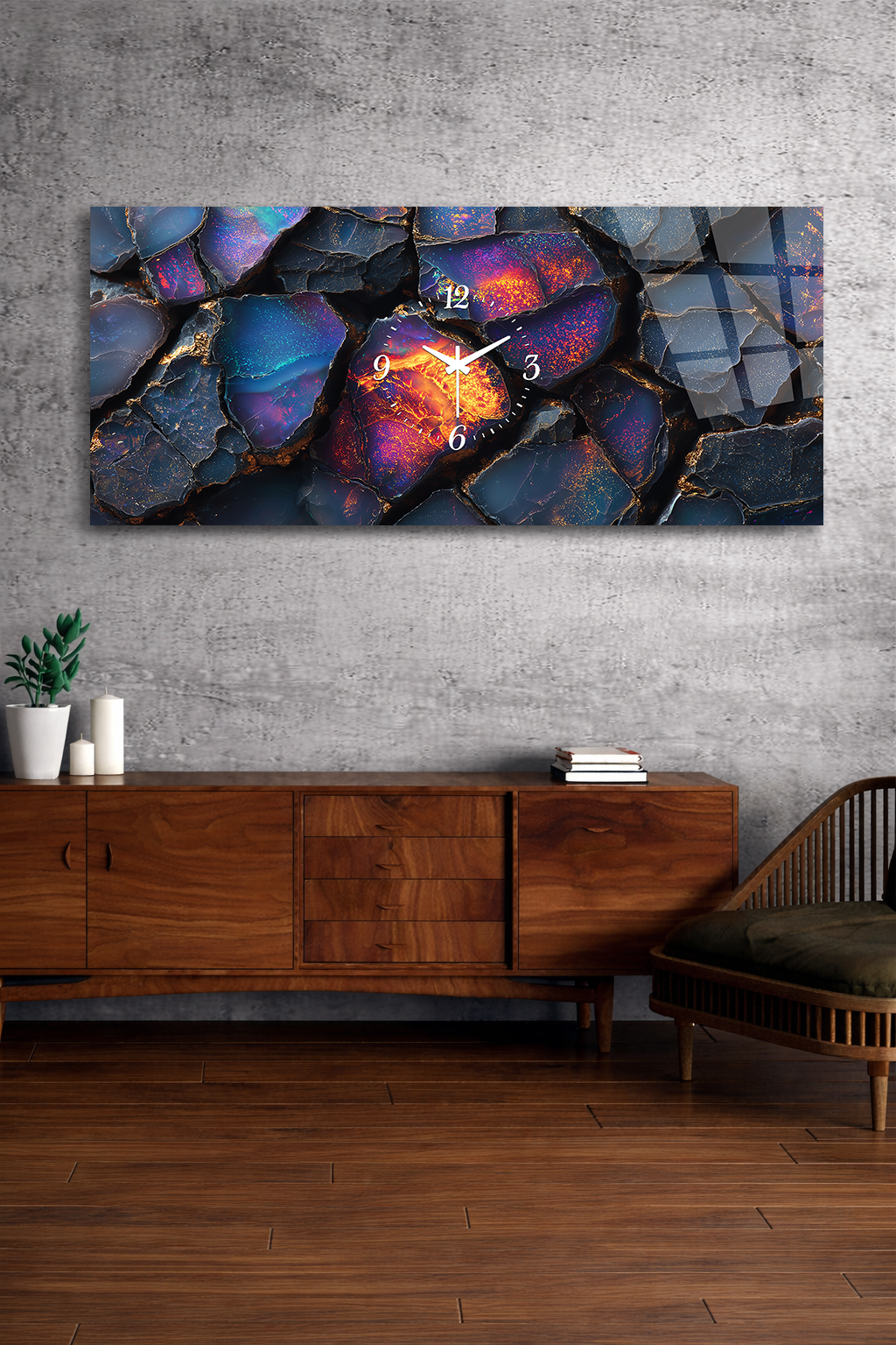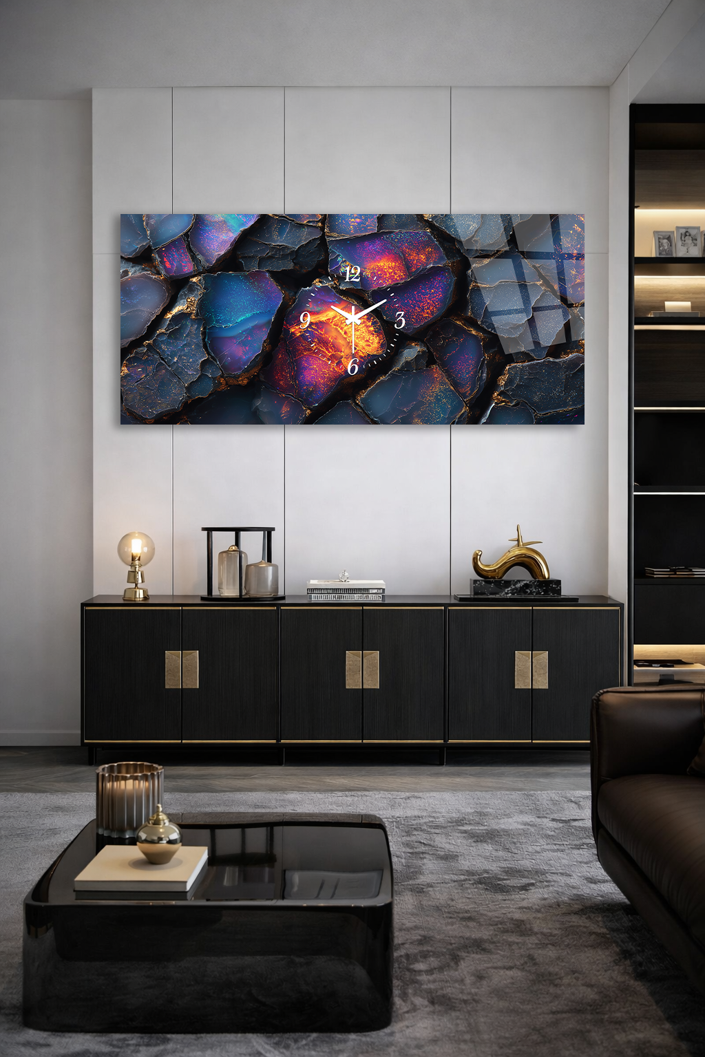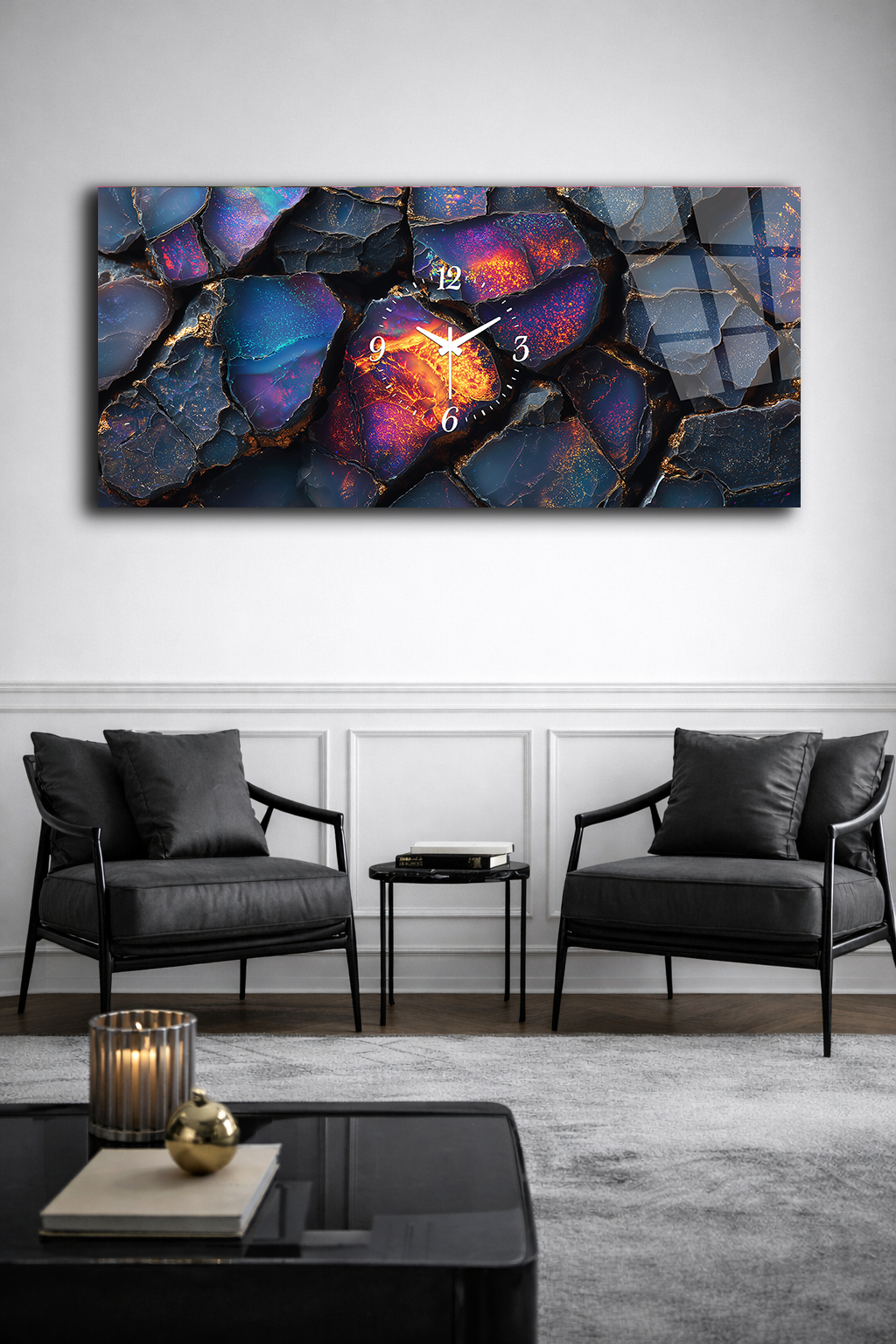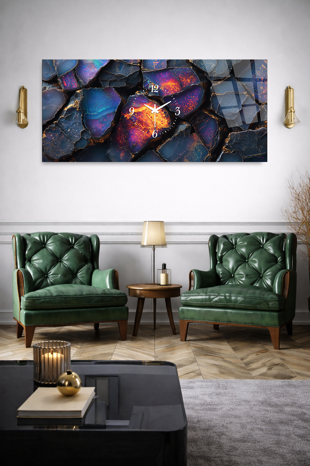 KIRILMAZ CAM DUVAR SAATİ , HEM TABLO HEM SAAT LAVA TAŞI SOYUT DESEN EV OFİS HEDİYESİ