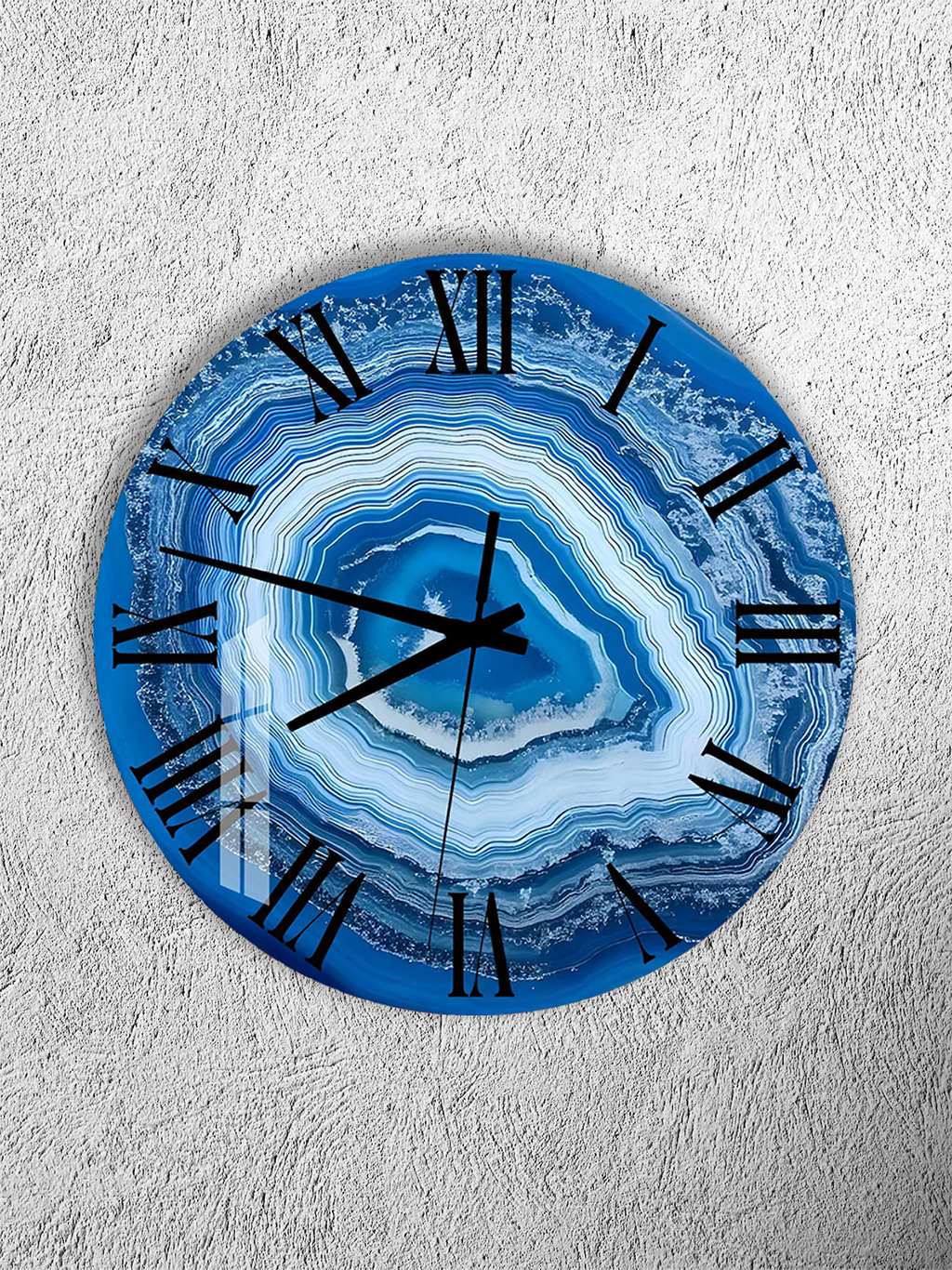 KIRILMAZ CAM DUVAR SAATİ, HEM TABLO HEM SAAT MAVİ AKİK TAŞI MERMER DESEN EV OFİS HEDİYESİ