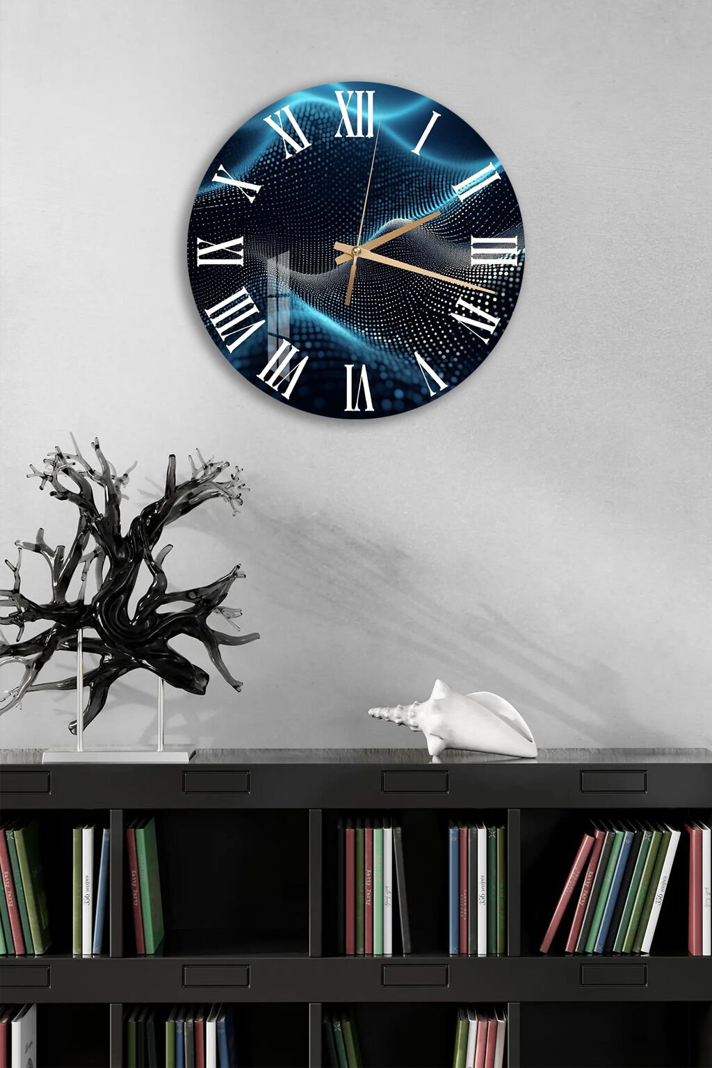 KIRILMAZ CAM DUVAR SAATİ, HEM TABLO HEM SAAT MAVİ DALGA DİJİTAL SOYUT MODERN EV OFİS HEDİYESİ