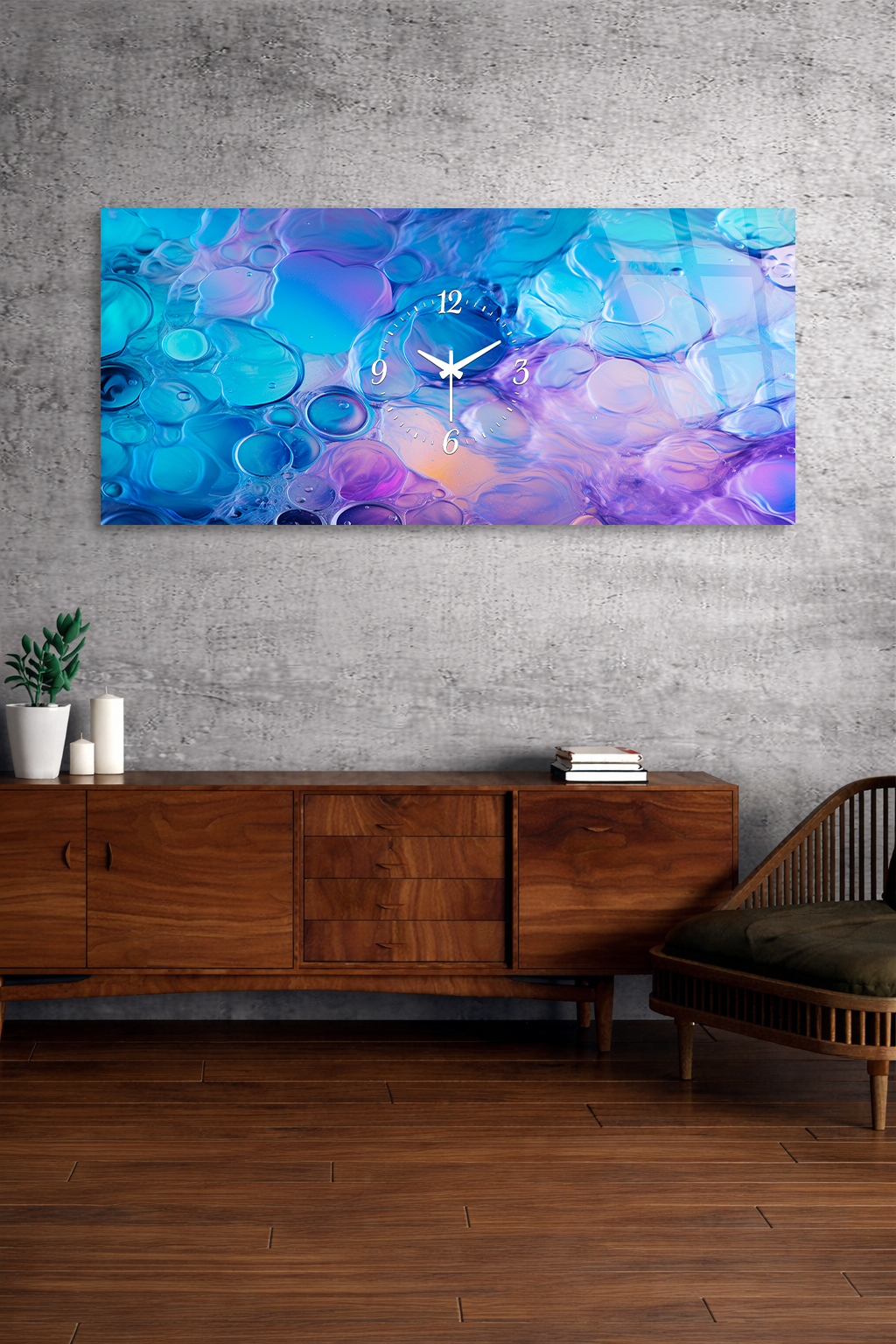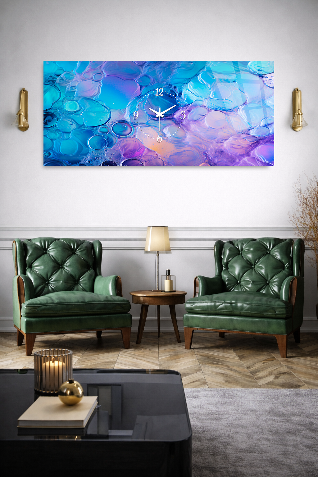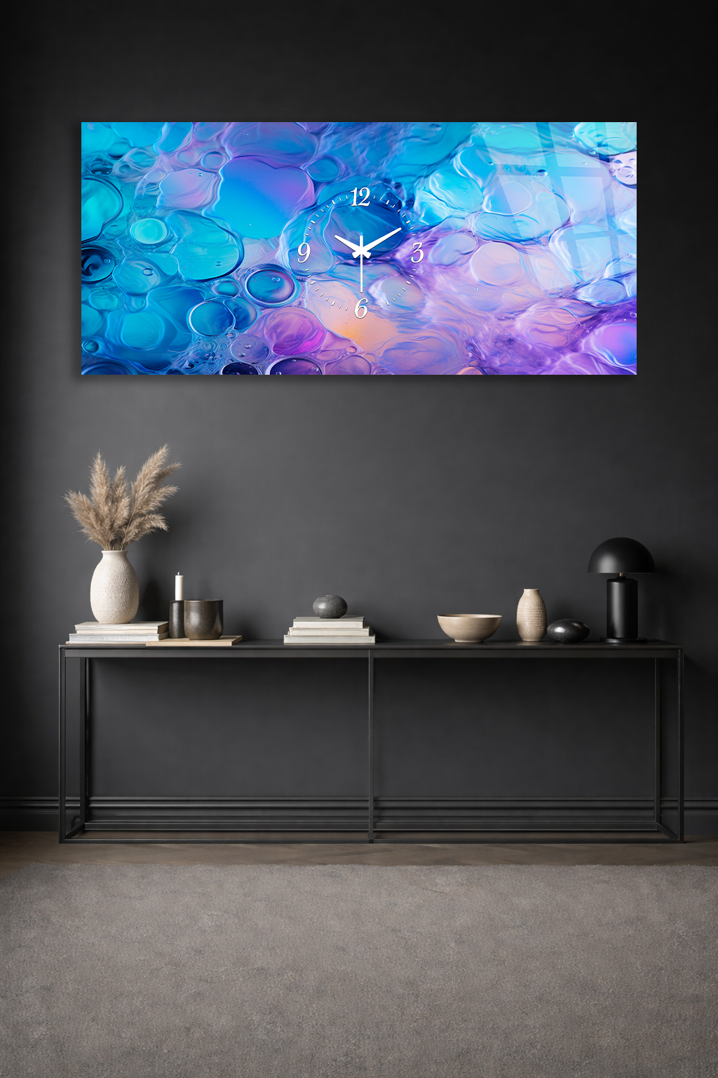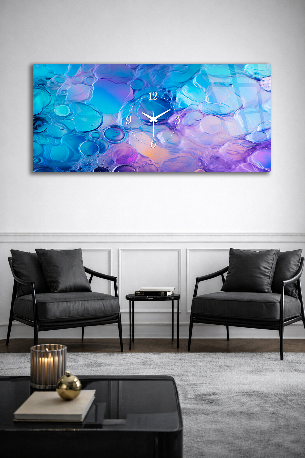 Hem şık bir tablo hem de işlevsel bir saat olarak tasarlanan bu özel ürün, ev ve ofis dekorasyonuna modern bir dokunuş katar.