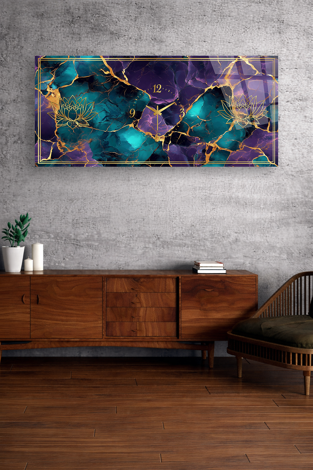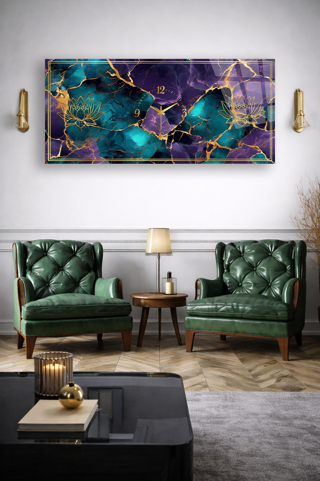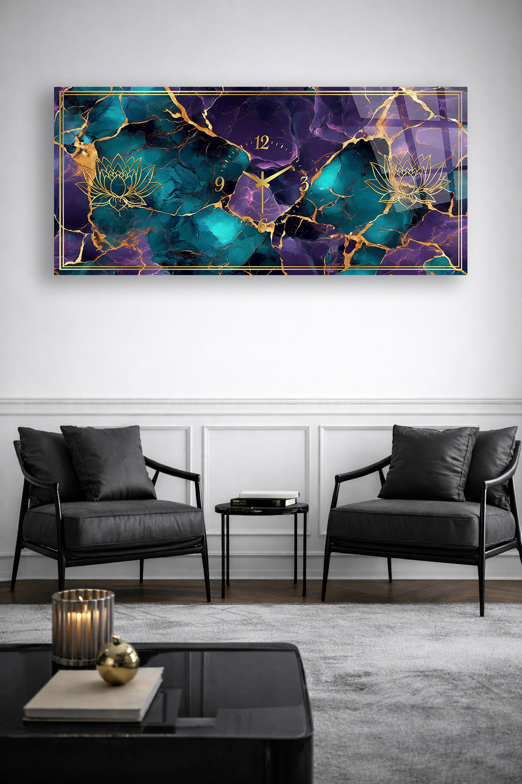 KIRILMAZ CAM DUVAR SAATİ , HEM TABLO HEM SAAT MERMER LOTUS GOLD DETAY EV OFİS HEDİYESİ