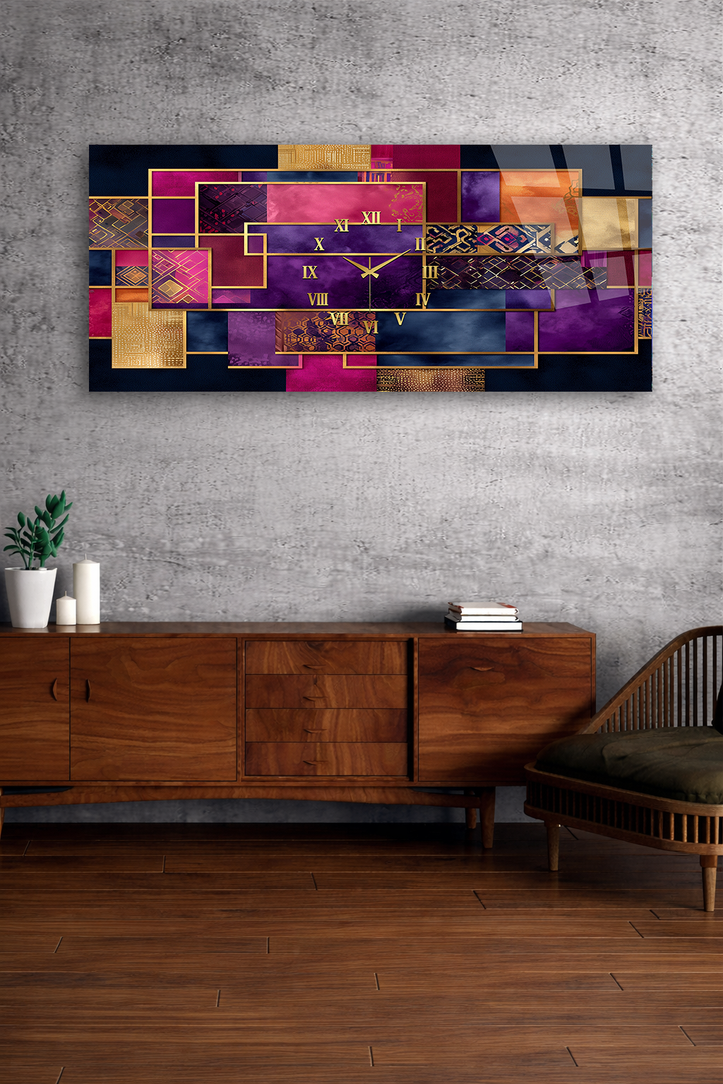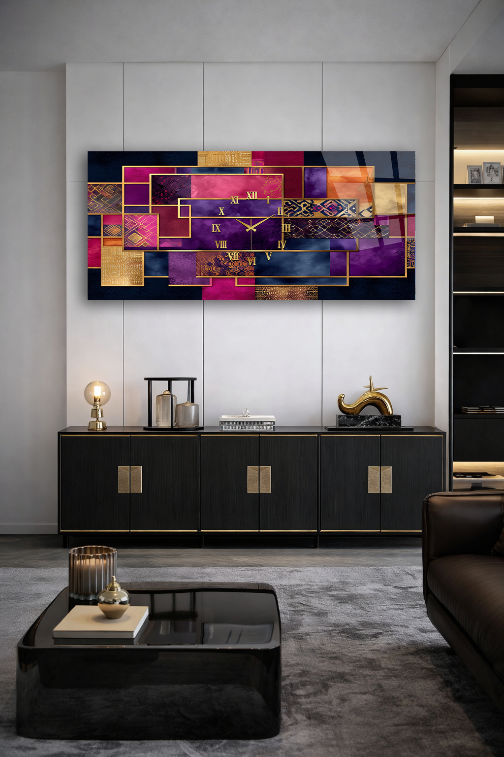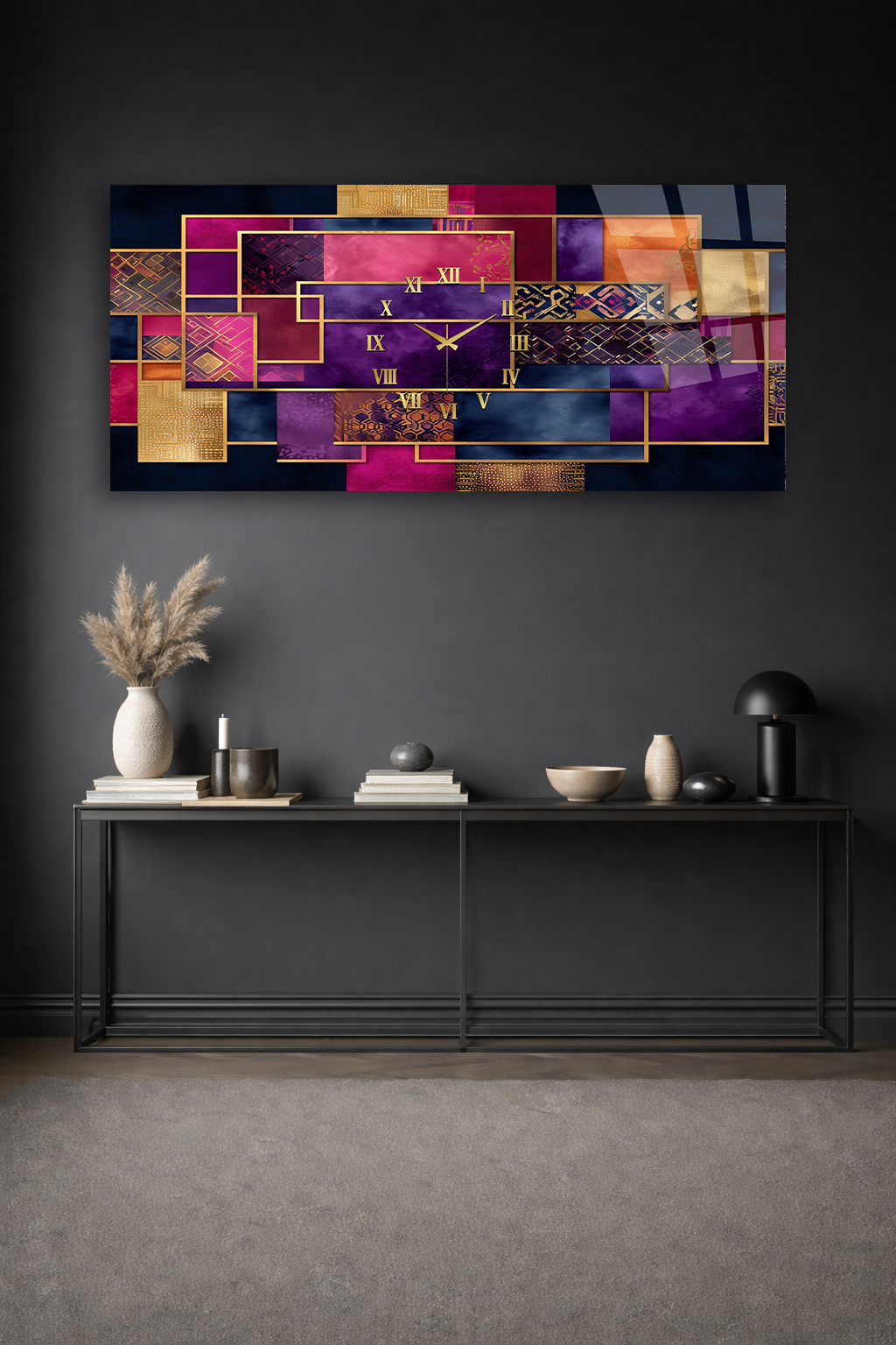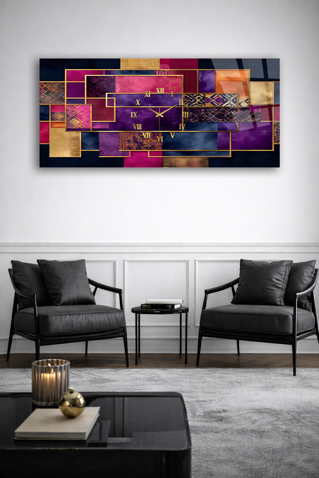 Hem şık bir tablo hem de işlevsel bir saat olarak tasarlanan bu özel ürün, ev ve ofis dekorasyonuna modern bir dokunuş katar.