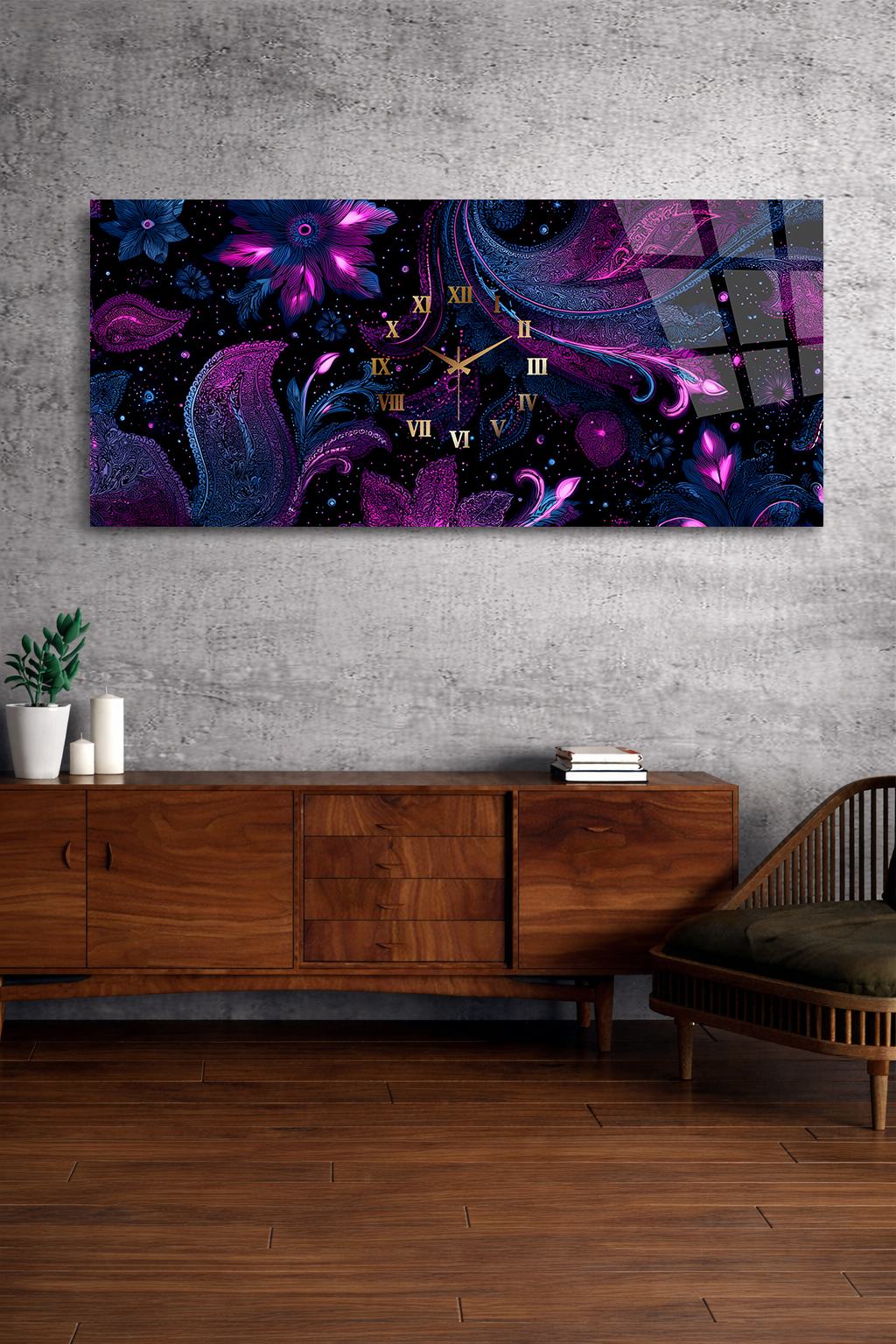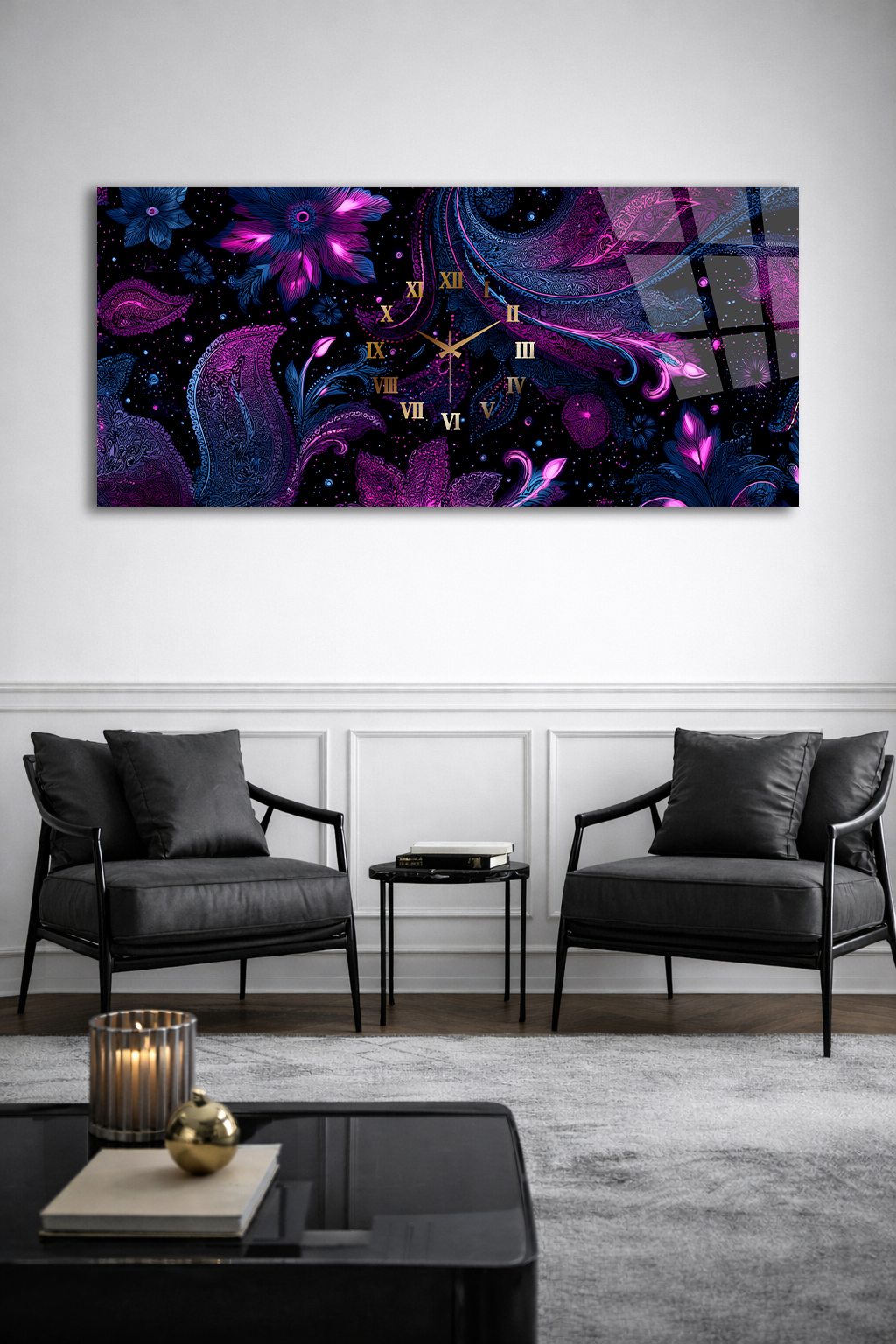 Hem şık bir tablo hem de işlevsel bir saat olarak tasarlanan bu özel ürün, ev ve ofis dekorasyonuna modern bir dokunuş katar.