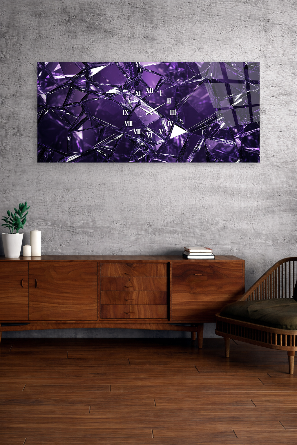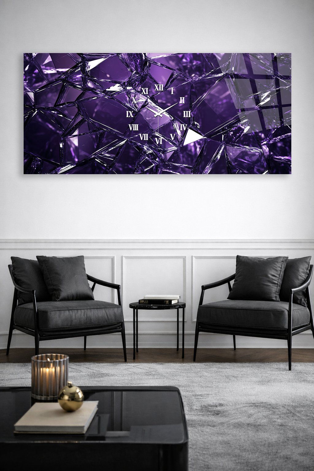 KIRILMAZ CAM DUVAR SAATİ , HEM TABLO HEM SAAT MOR KRİSTAL CAM EFEKTLİ LÜKS TASARIM EV OFİS HEDİYESİ