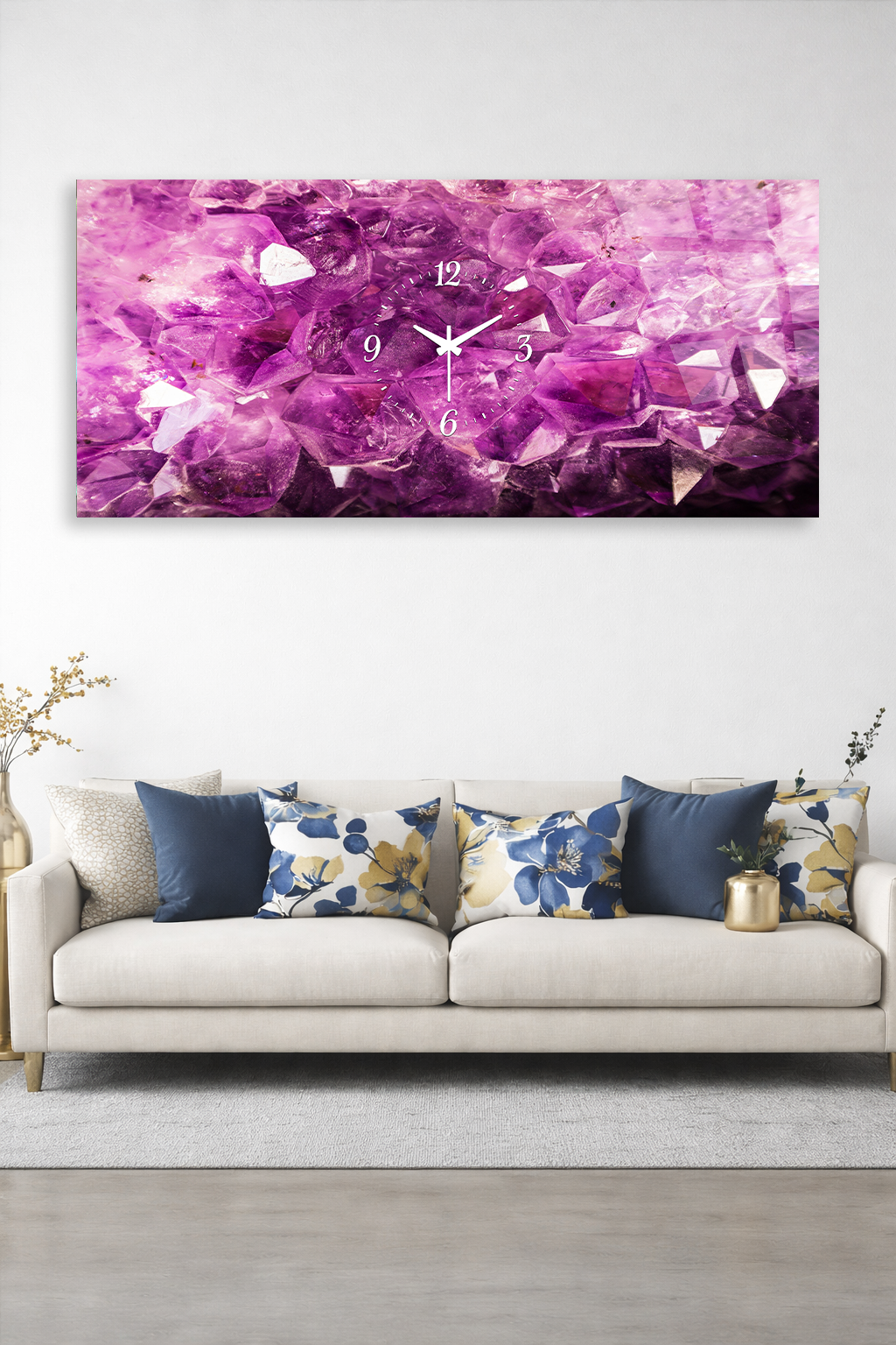 KIRILMAZ CAM DUVAR SAATİ , HEM TABLO HEM SAAT MOR KRİSTAL TAŞ DESENİ EV OFİS HEDİYESİ