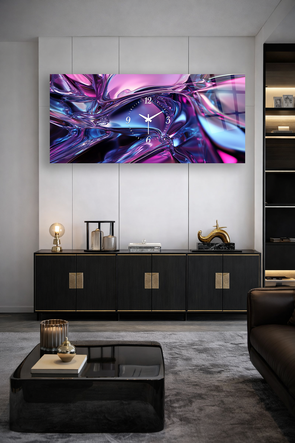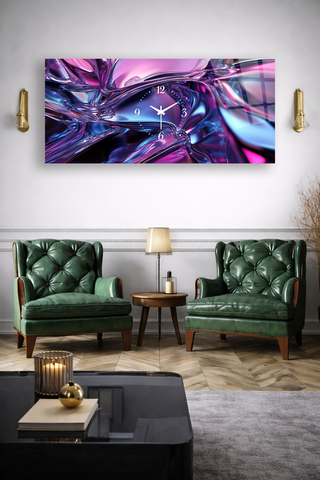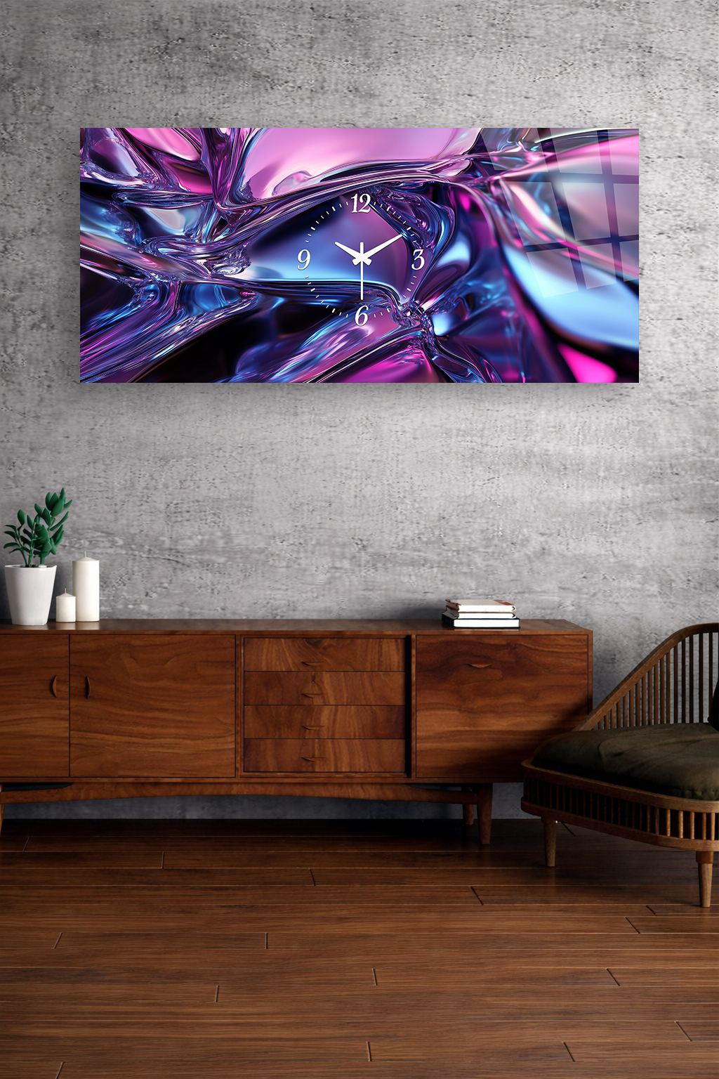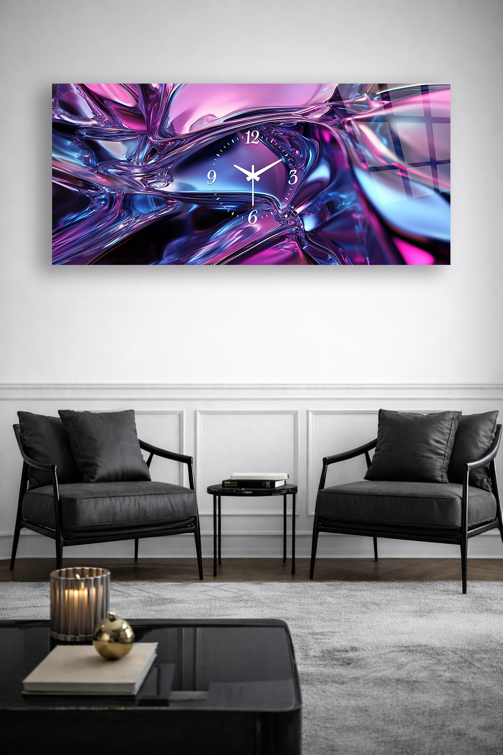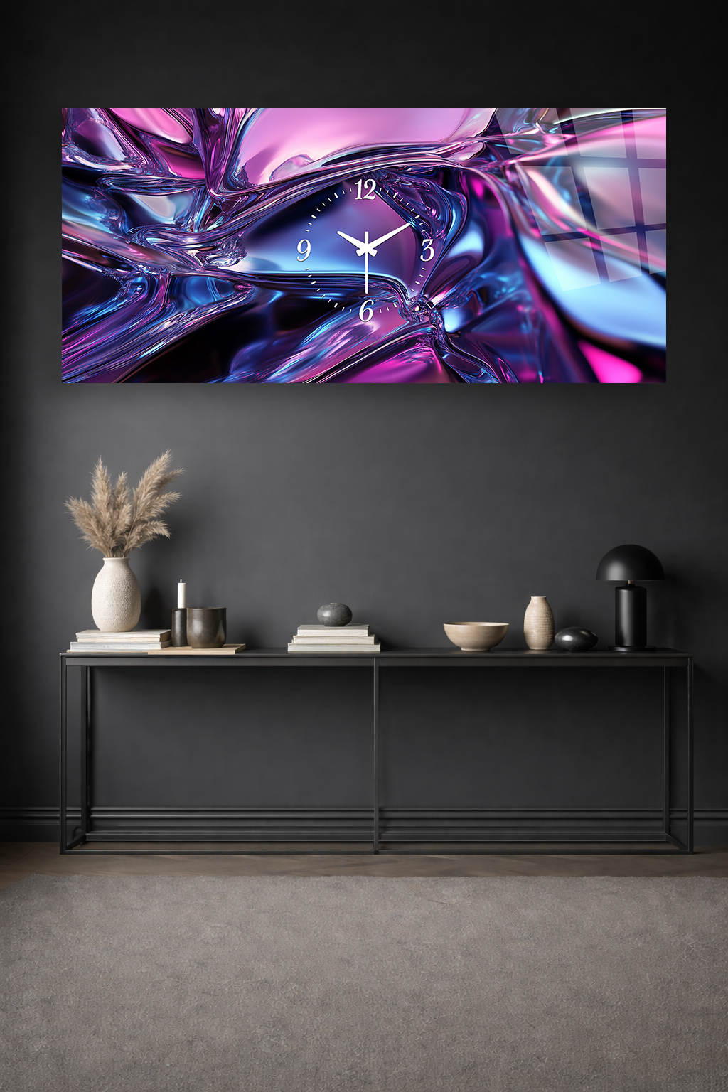KIRILMAZ CAM DUVAR SAATİ , HEM TABLO HEM SAAT MOR MAVİ CAM SOYUT DESEN EV OFİS HEDİYESİ