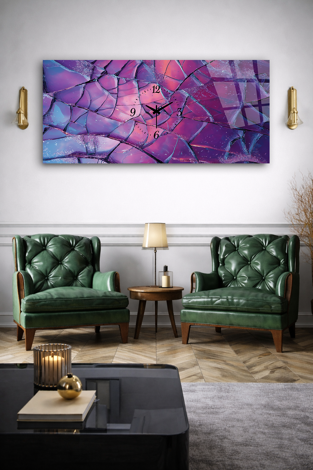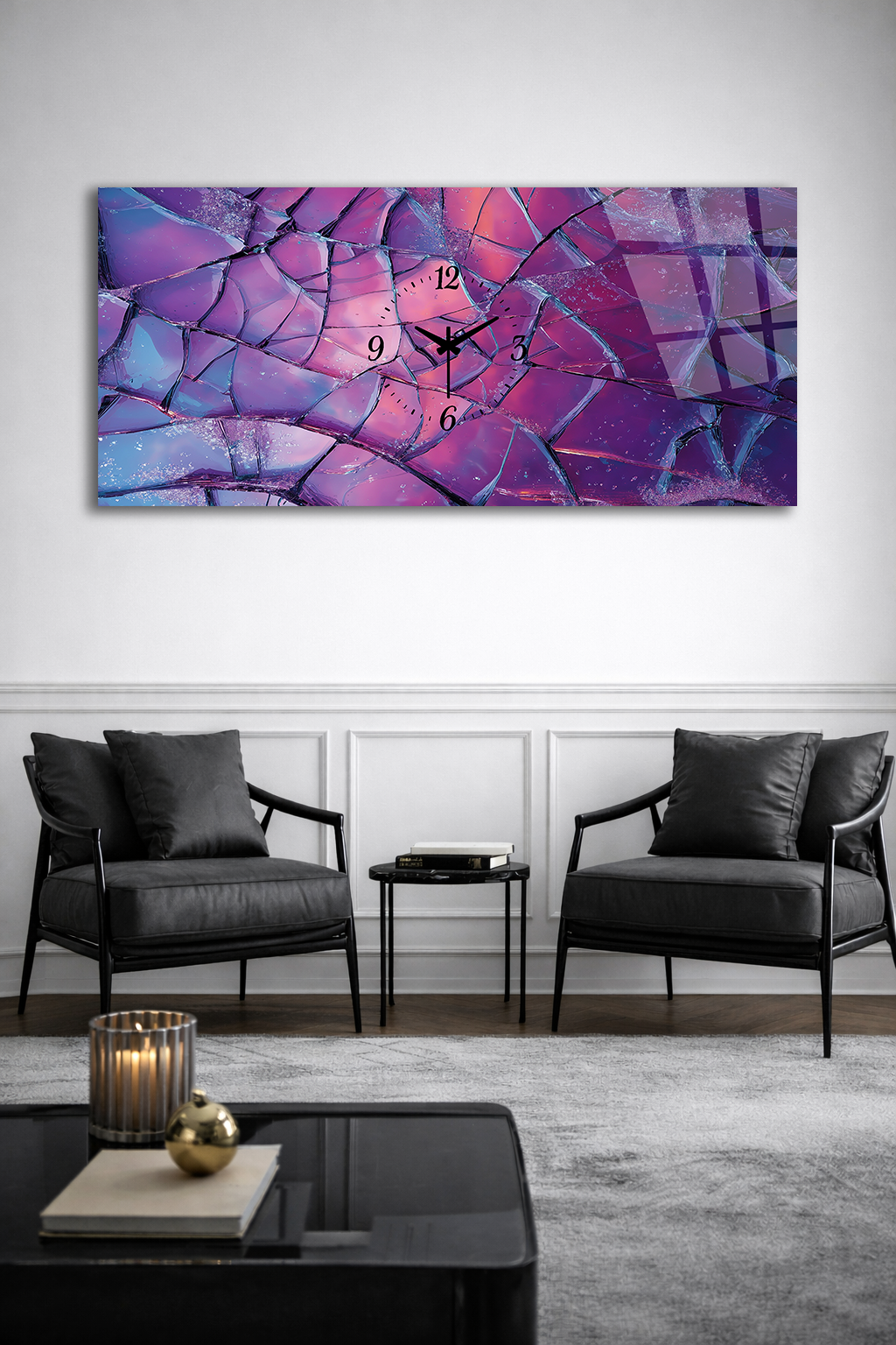 KIRILMAZ CAM DUVAR SAATİ , HEM TABLO HEM SAAT MOR MAVİ KIRIK CAM DESEN EV OFİS HEDİYESİ