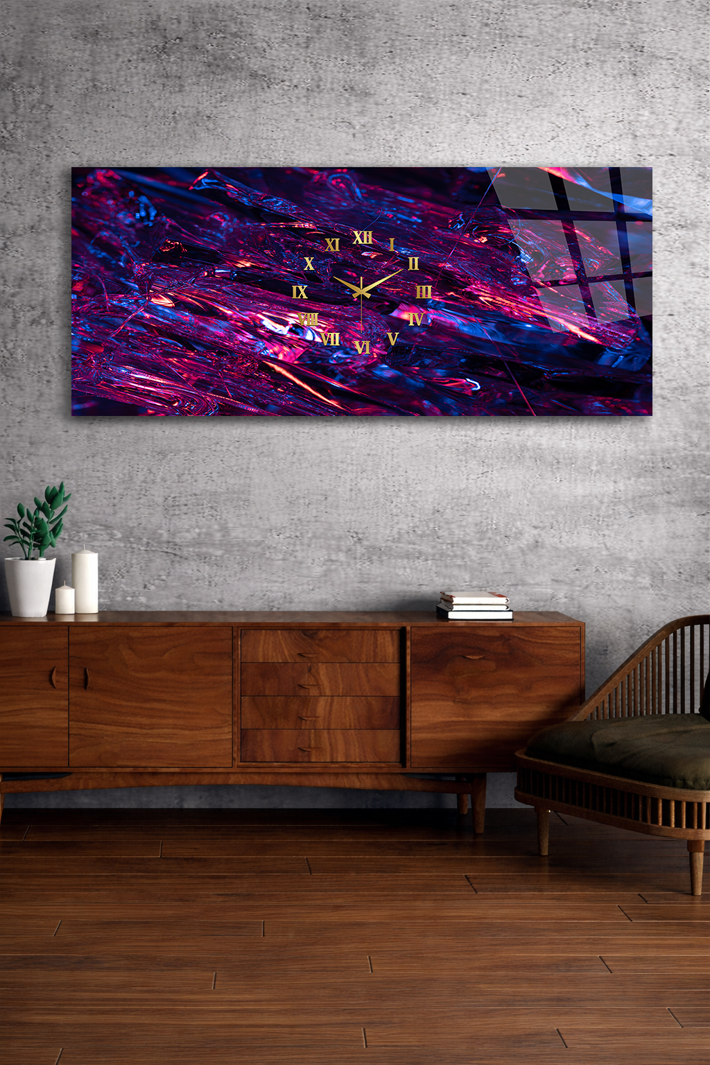 Hem şık bir tablo hem de işlevsel bir saat olarak tasarlanan bu özel ürün, ev ve ofis dekorasyonuna modern bir dokunuş katar.