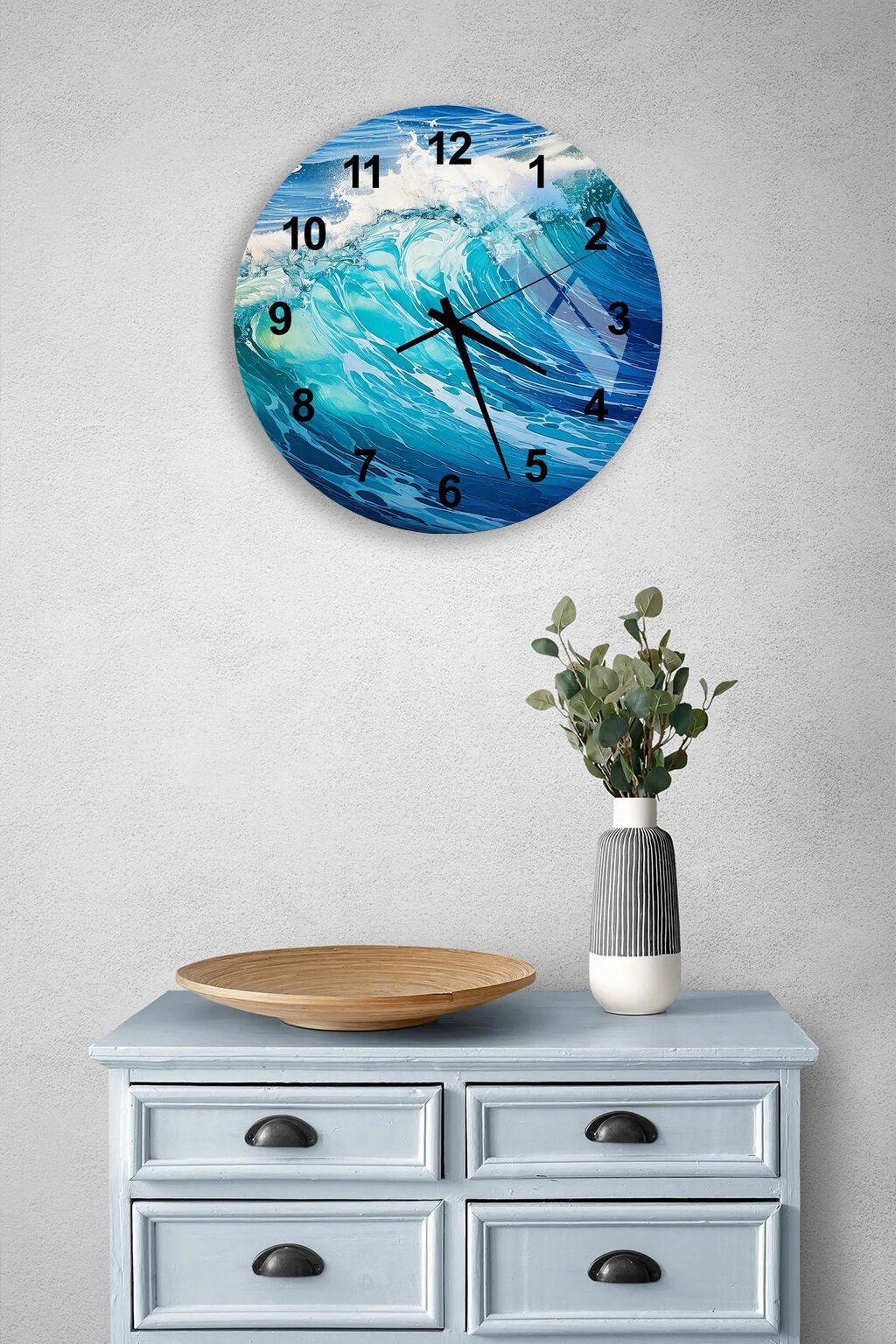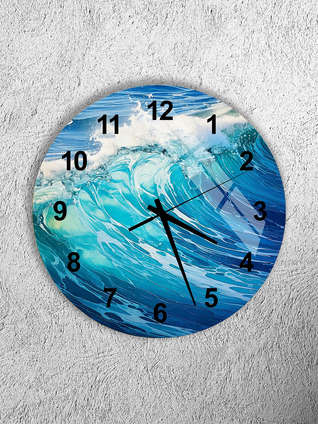 KIRILMAZ CAM DUVAR SAATİ, HEM TABLO HEM SAAT OKYANUS DALGA TEMALI DOĞA ESİNTİLİ TASARIM EV OFİS HEDİYESİ