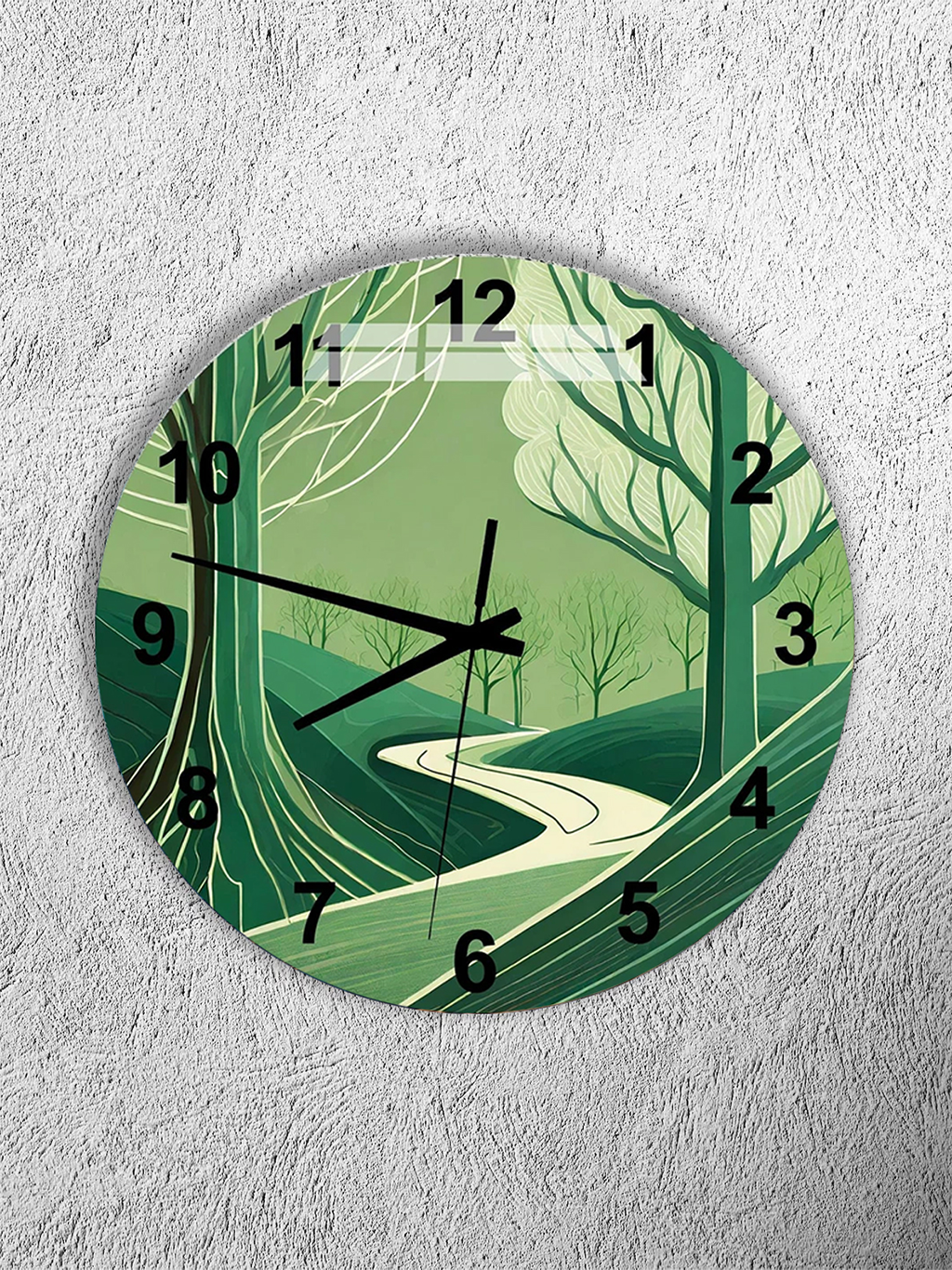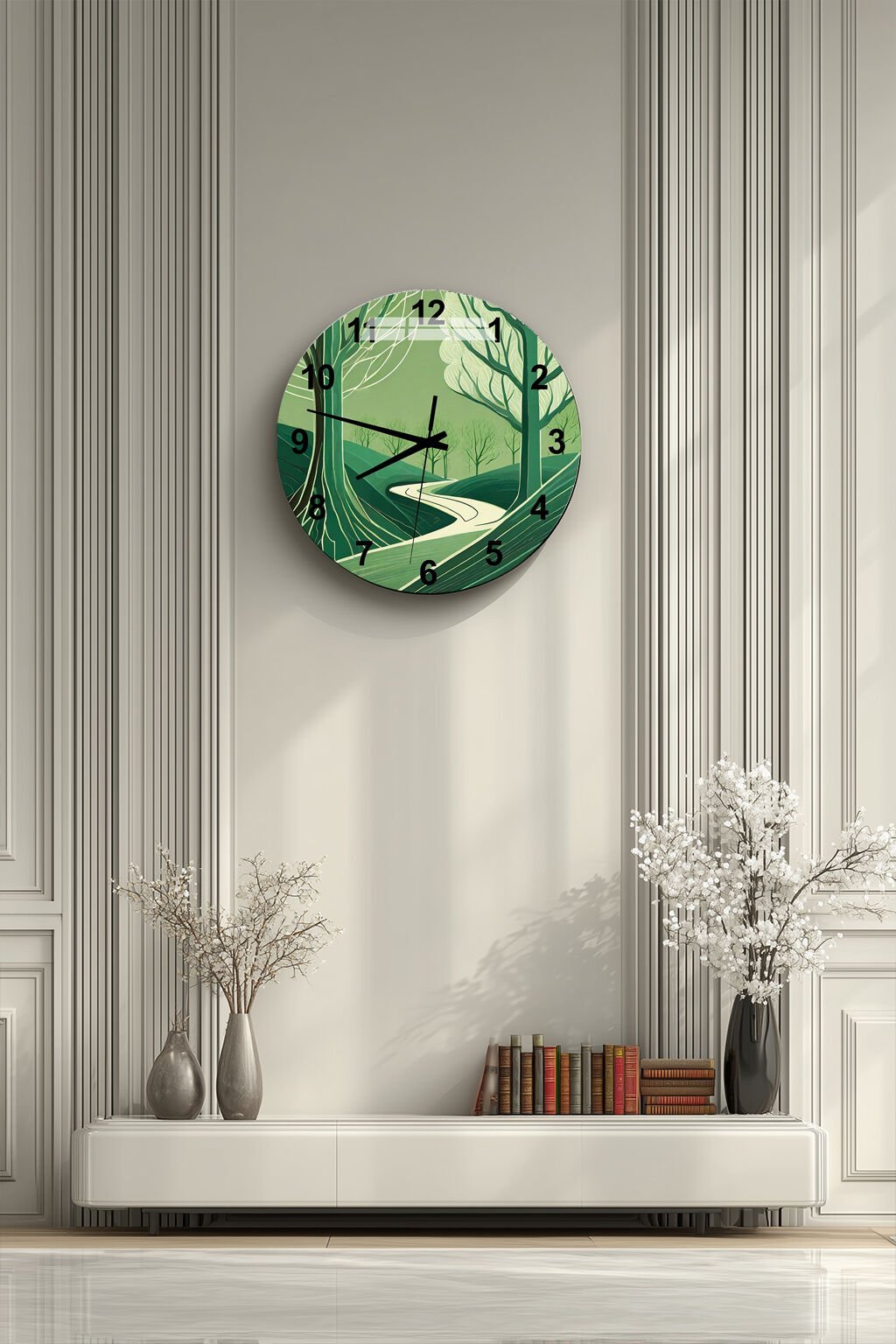 KIRILMAZ CAM DUVAR SAATİ, HEM TABLO HEM SAAT ORMAN YOLU DOĞA MANZARASI EV OFİS HEDİYESİ