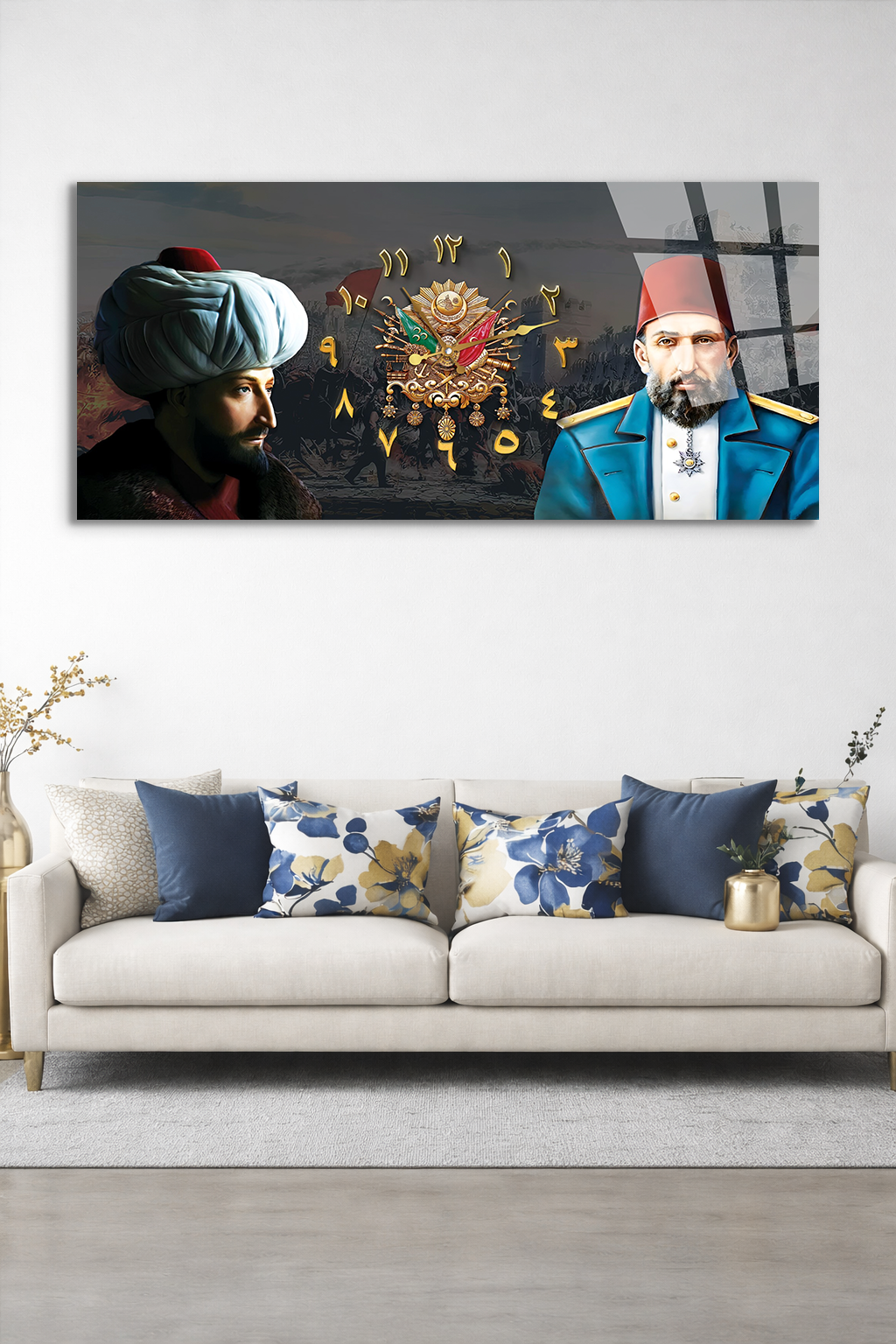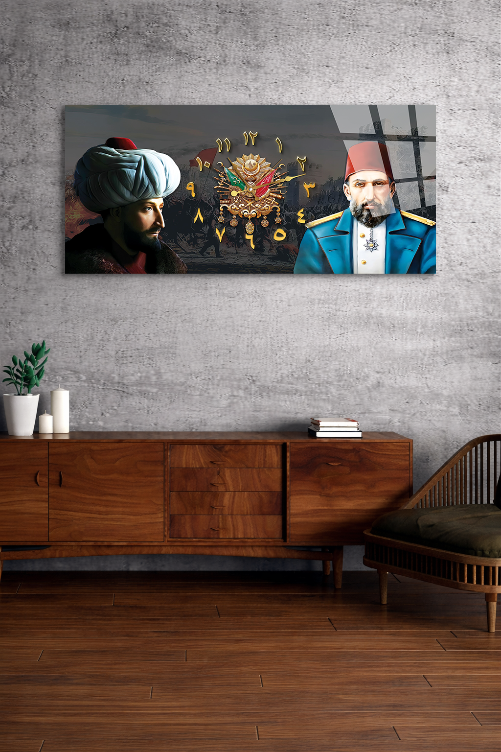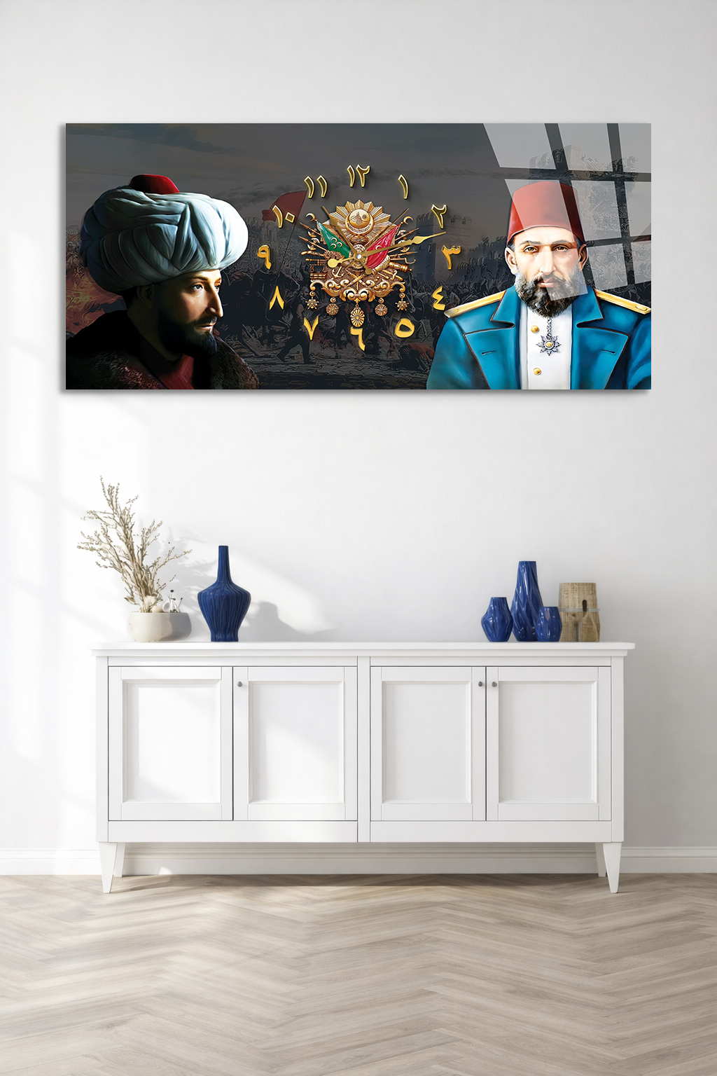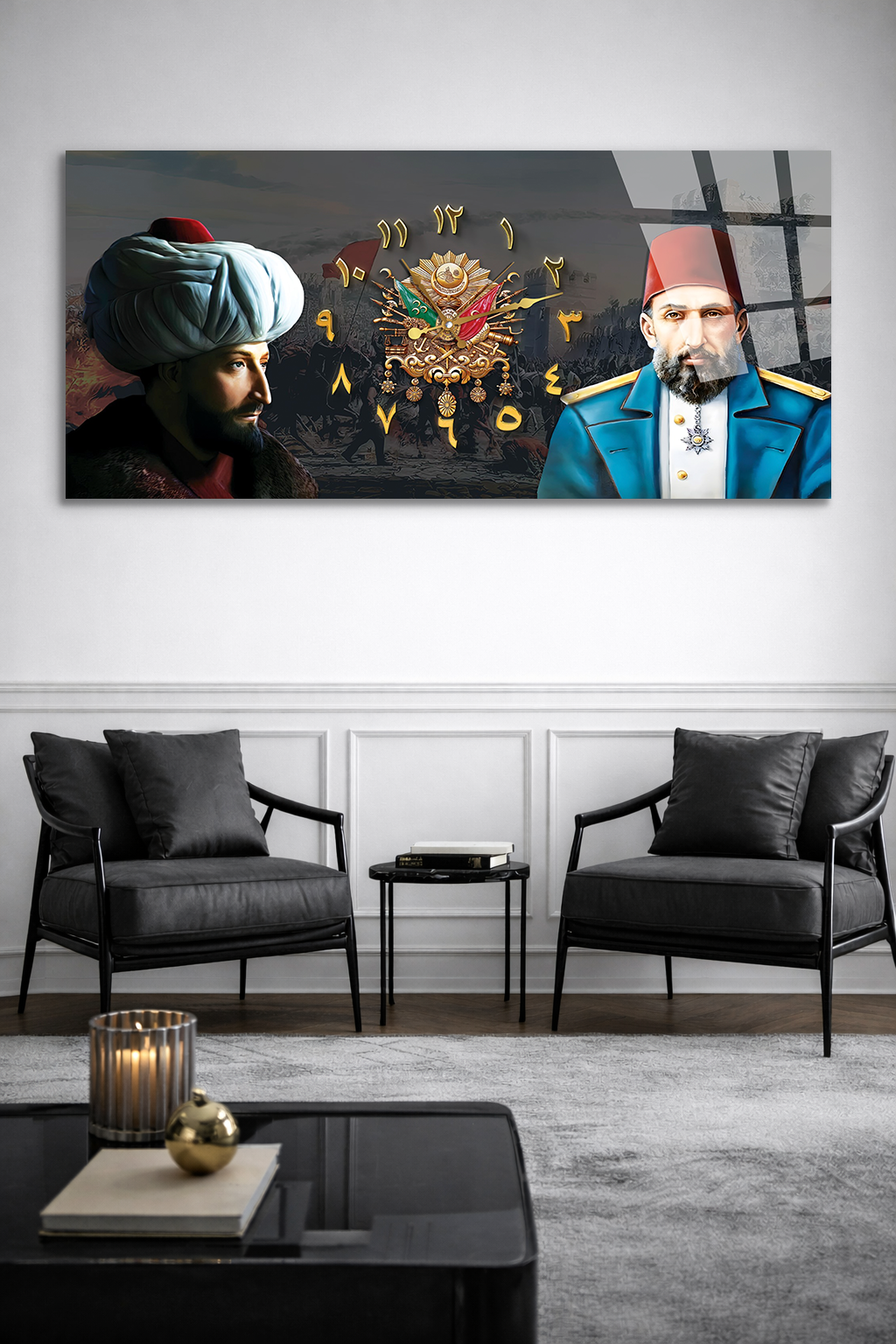 KIRILMAZ CAM DUVAR SAATİ , HEM TABLO HEM SAAT OSMANLI ARMASI PADİŞAH TASARIM EV OFİS HEDİYESİ
