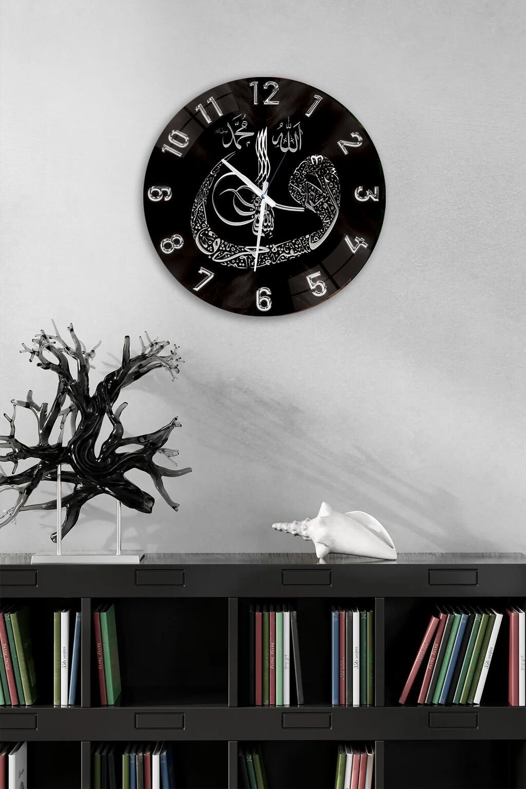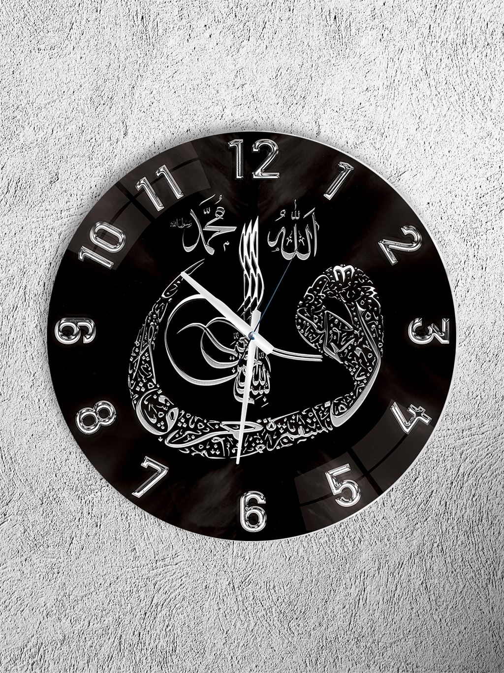 KIRILMAZ CAM DUVAR SAATİ, HEM TABLO HEM SAAT OSMANLI HAT SANATI SİYAH BEYAZ EV OFİS HEDİYESİ