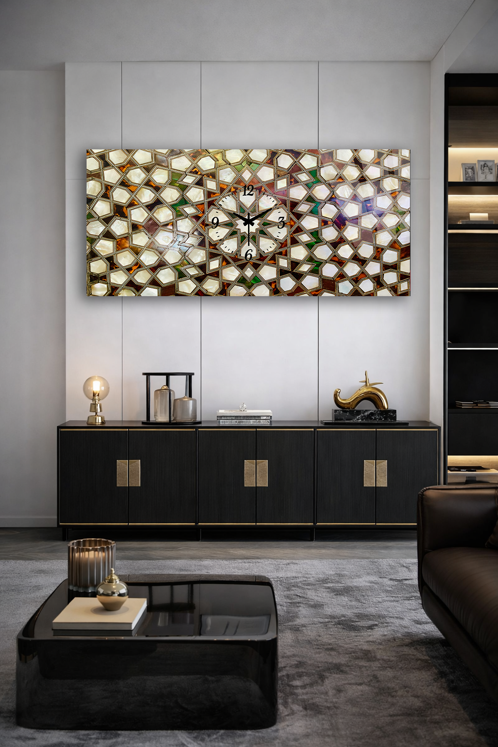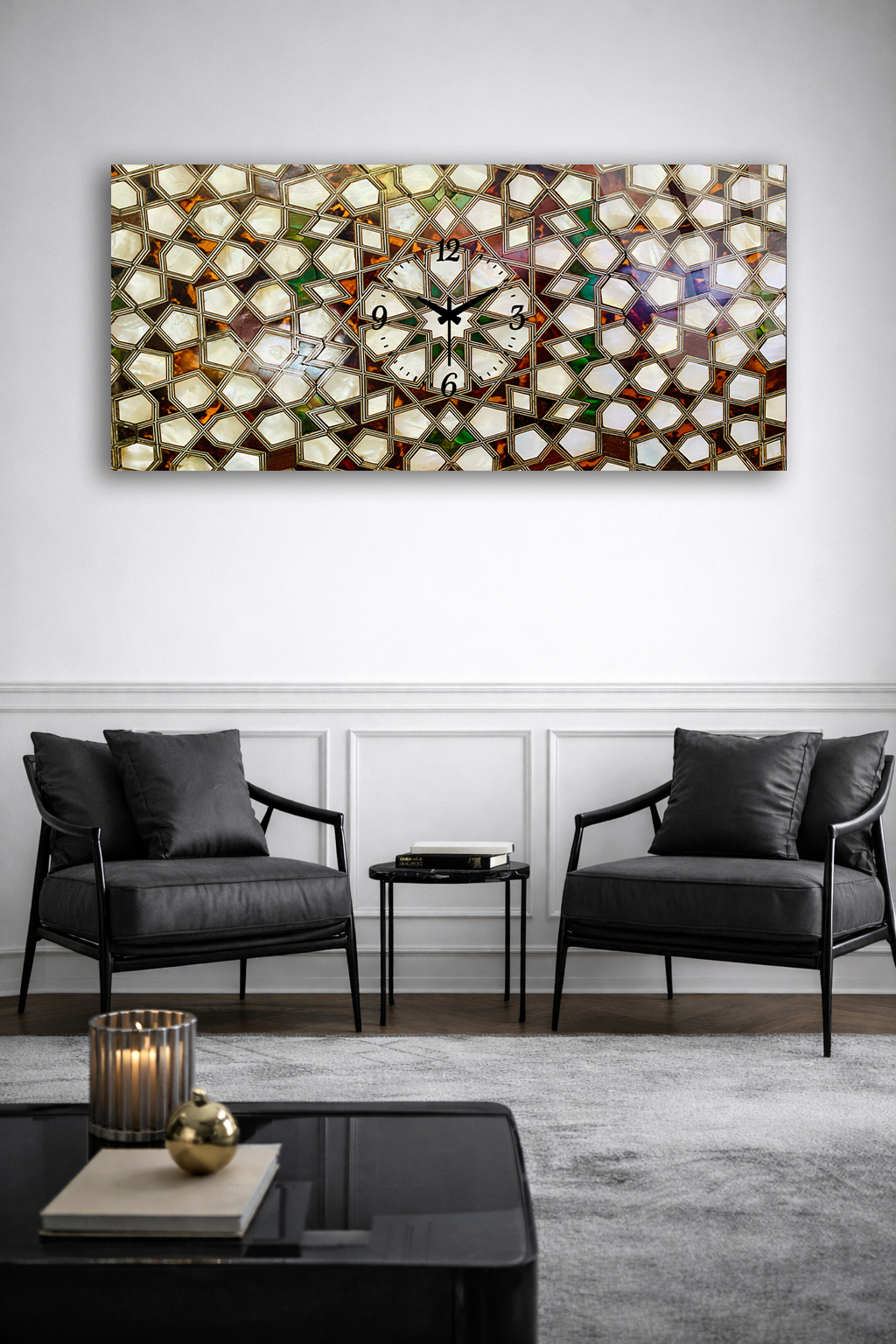 KIRILMAZ CAM DUVAR SAATİ , HEM TABLO HEM SAAT OSMANLI SELÇUKLU MOZAİK DESEN EV OFİS HEDİYESİ