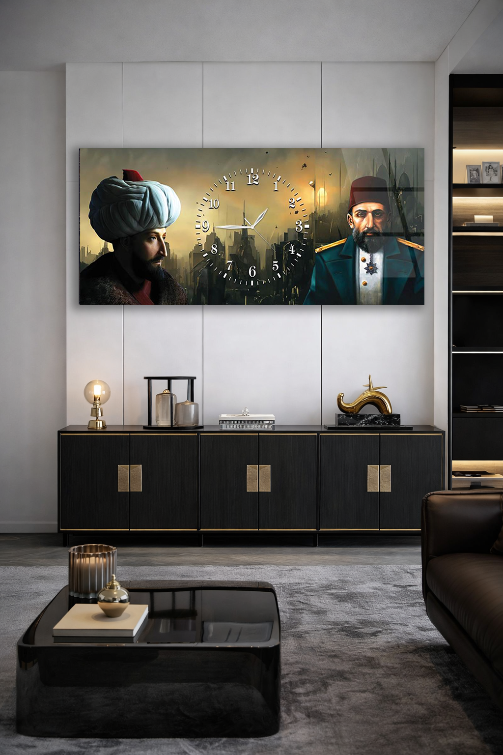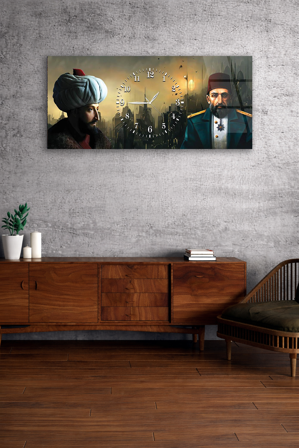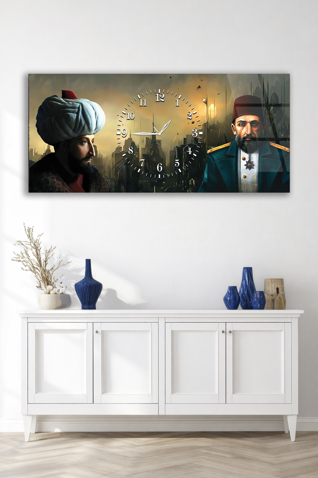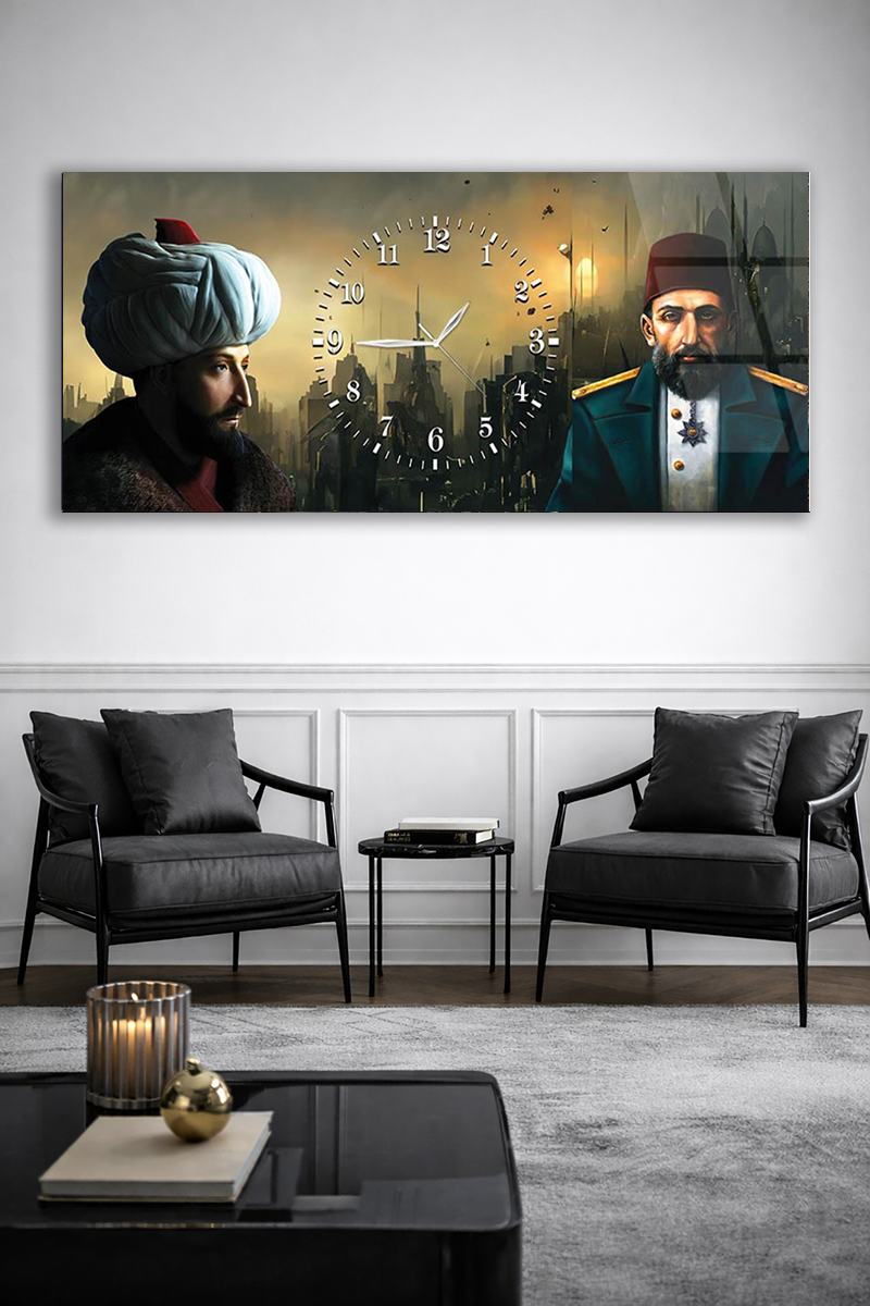 KIRILMAZ CAM DUVAR SAATİ , HEM TABLO HEM SAAT OSMANLI TARİHİ TEMALI DUVAR SAATİ EV OFİS HEDİYESİ