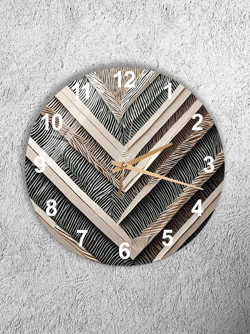 KIRILMAZ CAM DUVAR SAATİ, HEM TABLO HEM SAAT PALMİYE YAPRAĞI GEOMETRİK DESEN MODERN EV OFİS HEDİYESİ