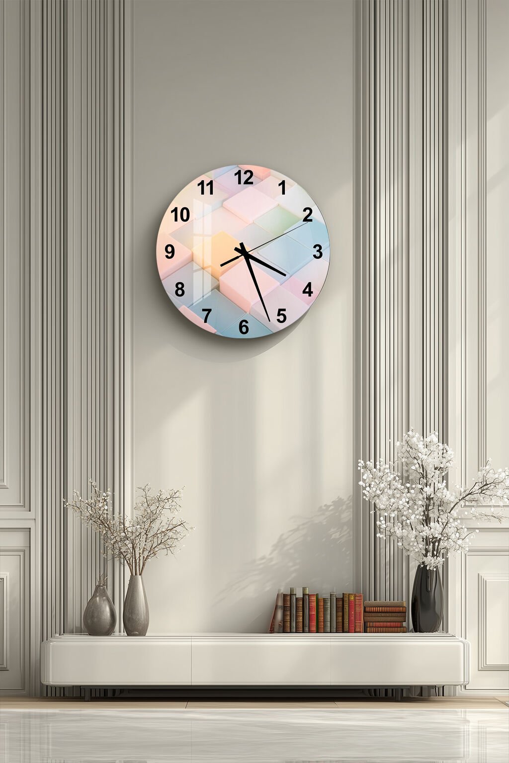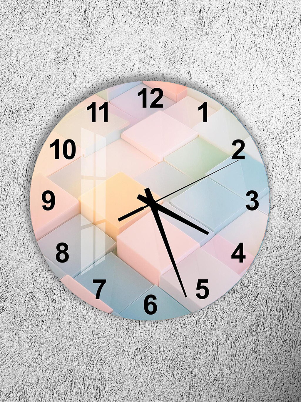 KIRILMAZ CAM DUVAR SAATİ, HEM TABLO HEM SAAT PASTEL 3D KÜP MODERN TASARIM EV OFİS HEDİYESİ