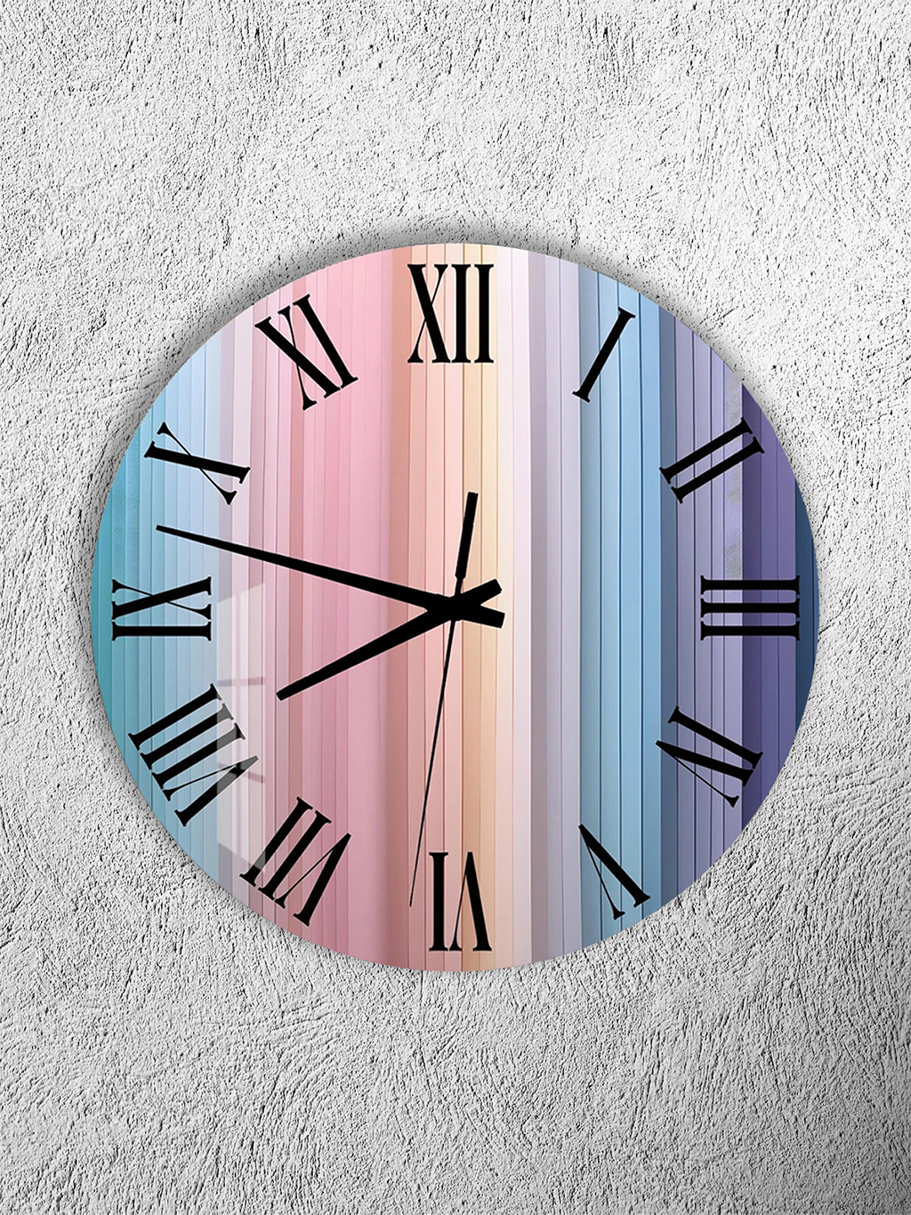KIRILMAZ CAM DUVAR SAATİ, HEM TABLO HEM SAAT PASTEL DİKEY ÇİZGİ GRADYAN MODERN TASARIM EV OFİS HEDİYESİ