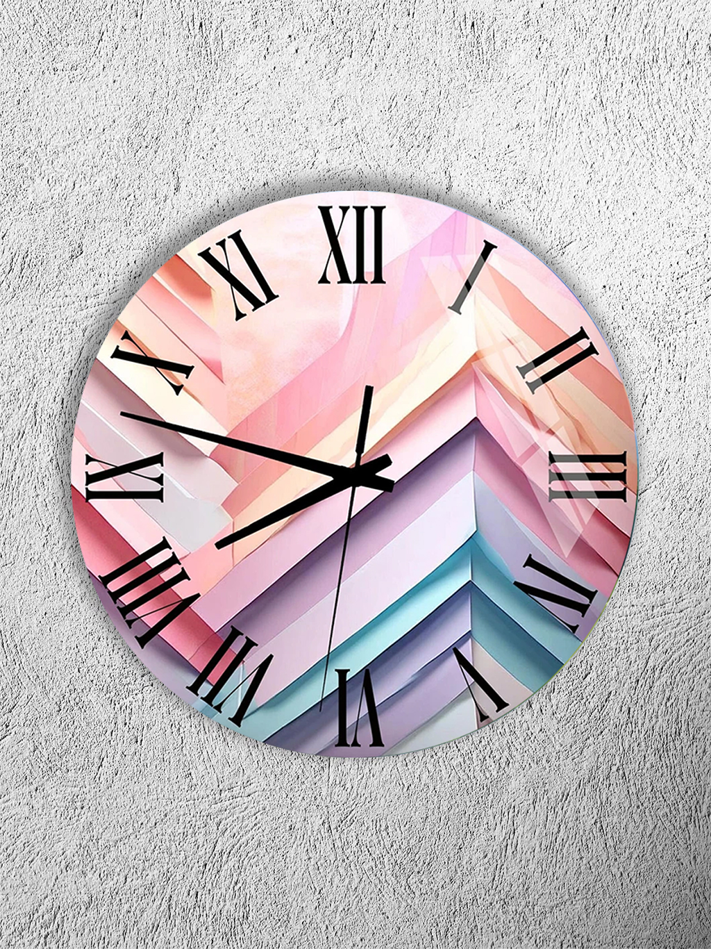 KIRILMAZ CAM DUVAR SAATİ, HEM TABLO HEM SAAT PASTEL GEOMETRİK KATMAN DESEN MODERN TASARIM EV OFİS HEDİYESİ