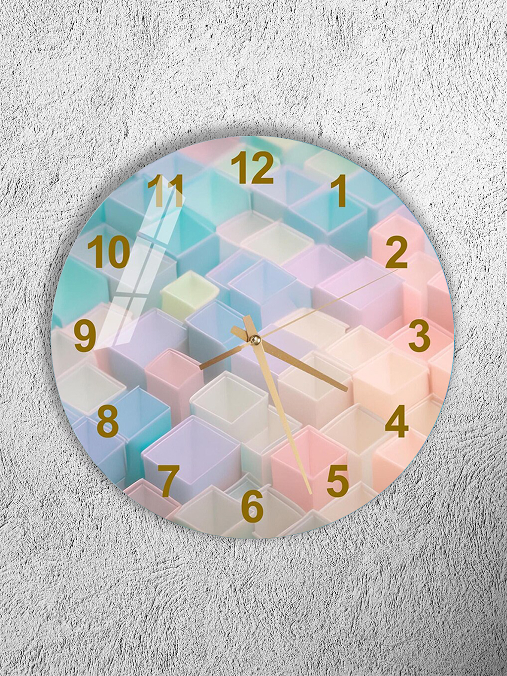 KIRILMAZ CAM DUVAR SAATİ, HEM TABLO HEM SAAT PASTEL RENK 3D KÜP DESEN EV OFİS HEDİYESİ
