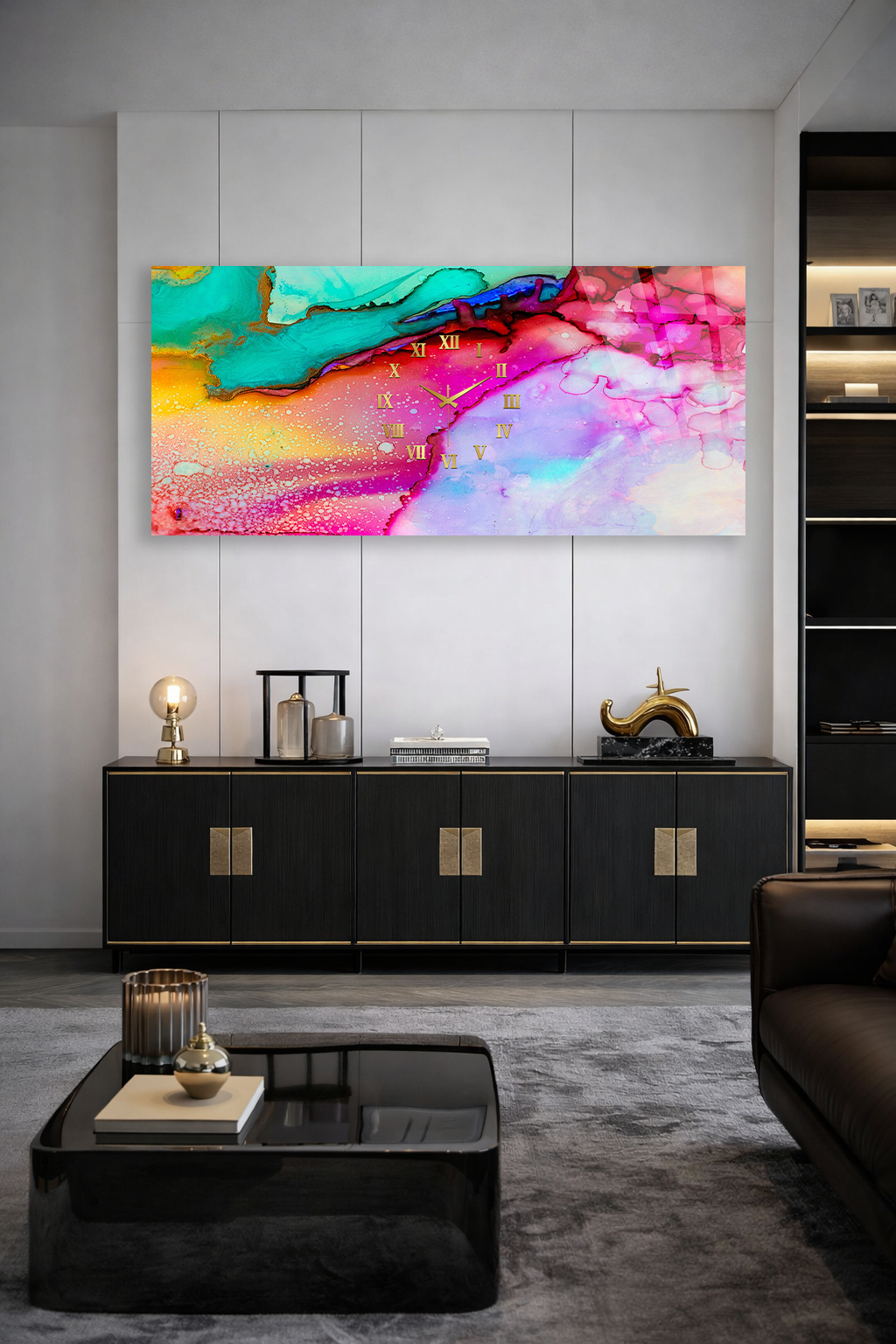 Hem şık bir tablo hem de işlevsel bir saat olarak tasarlanan bu özel ürün, ev ve ofis dekorasyonuna modern bir dokunuş katar.