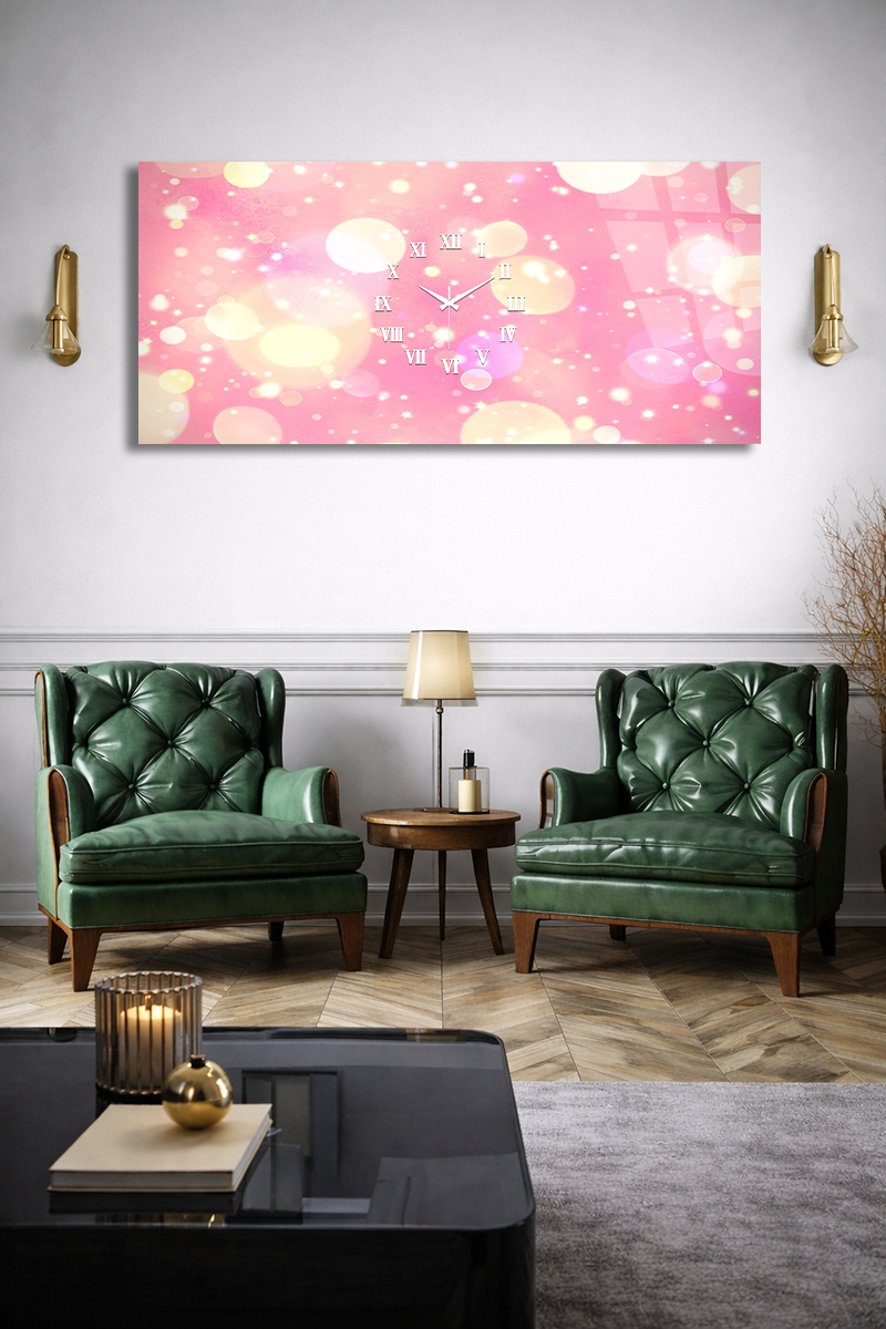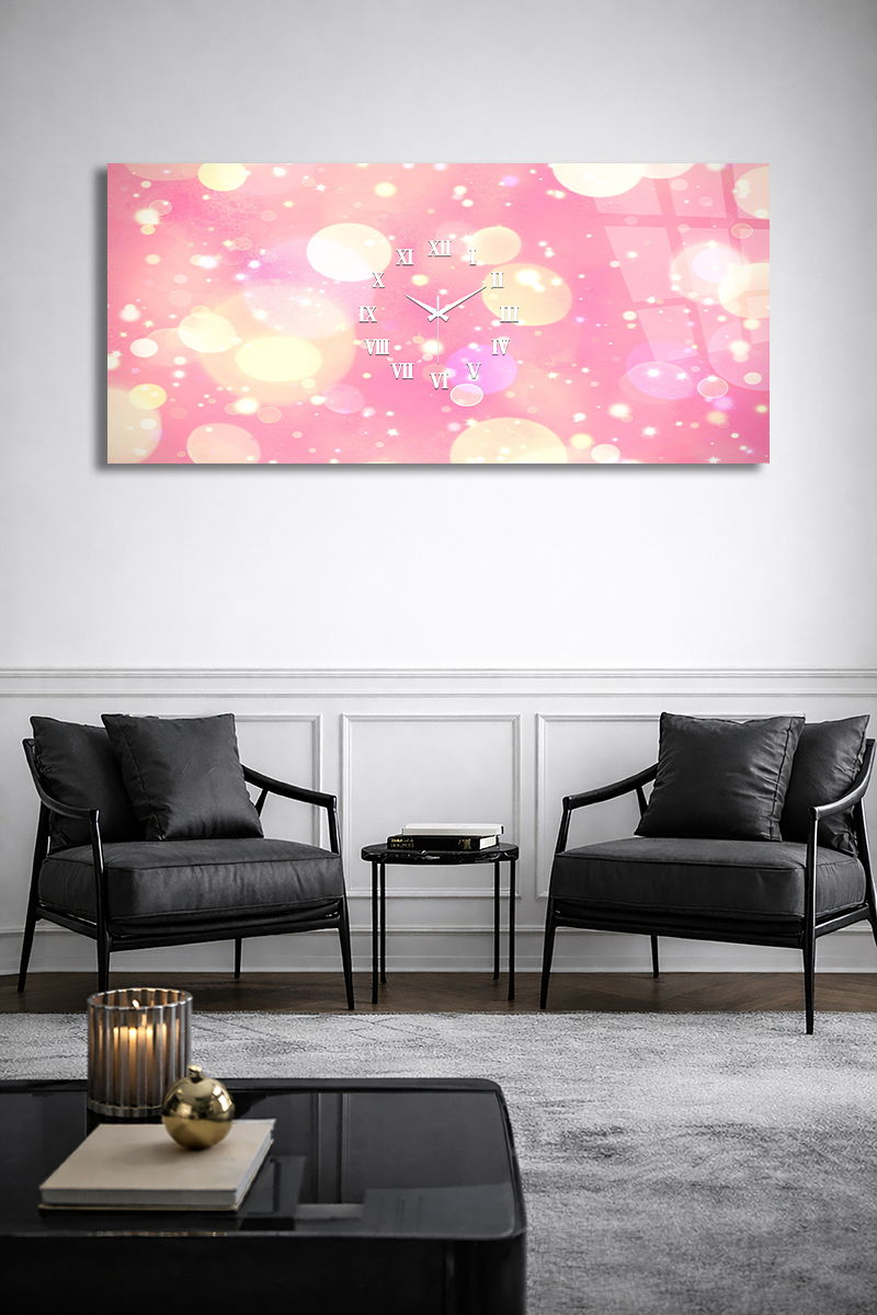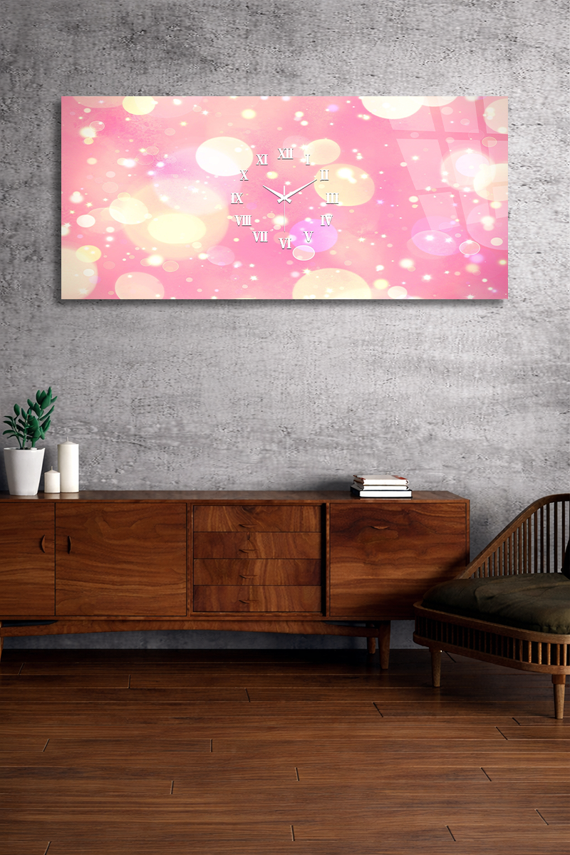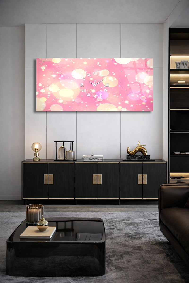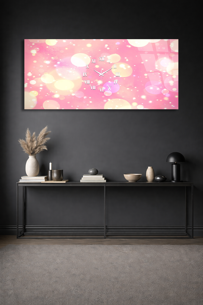 KIRILMAZ CAM DUVAR SAATİ , HEM TABLO HEM SAAT PEMBE IŞIKLI ROMANTİK MODERN DEKOR EV OFİS HEDİYESİ