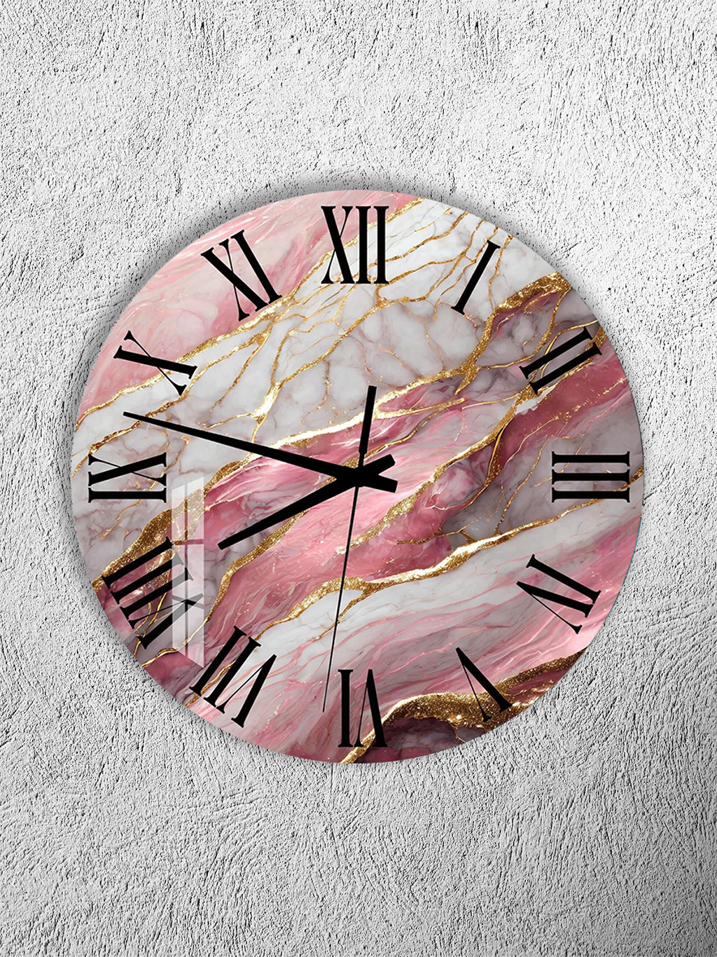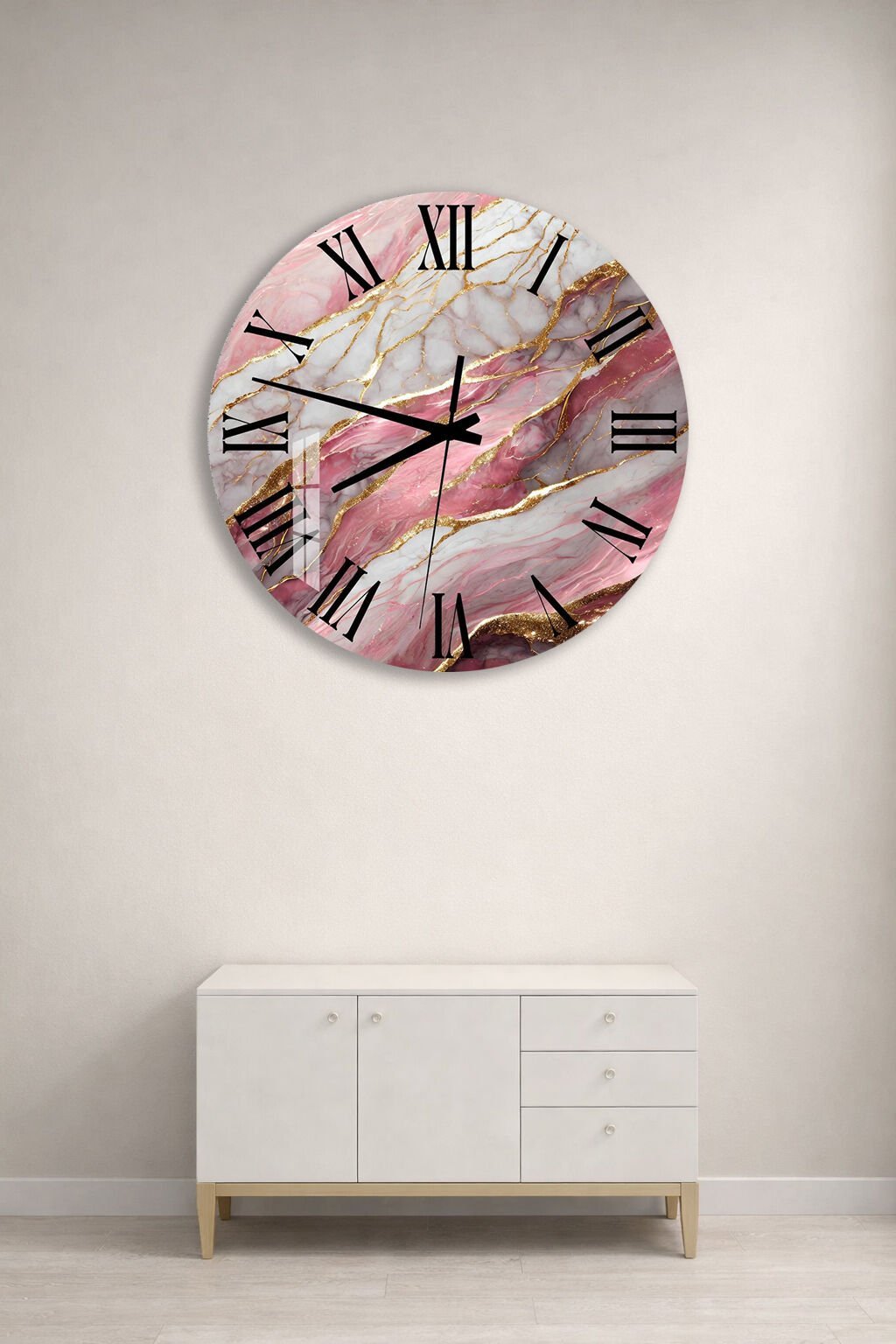 KIRILMAZ CAM DUVAR SAATİ, HEM TABLO HEM SAAT PEMBE MERMER ALTIN DETAY EV OFİS HEDİYESİ
