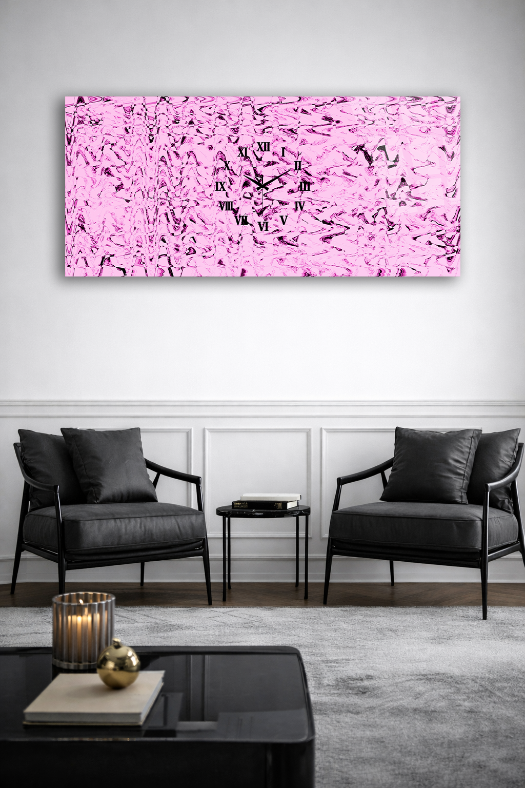 KIRILMAZ CAM DUVAR SAATİ , HEM TABLO HEM SAAT PEMBE SOYUT CAM DESEN MODERN EV OFİS HEDİYESİ