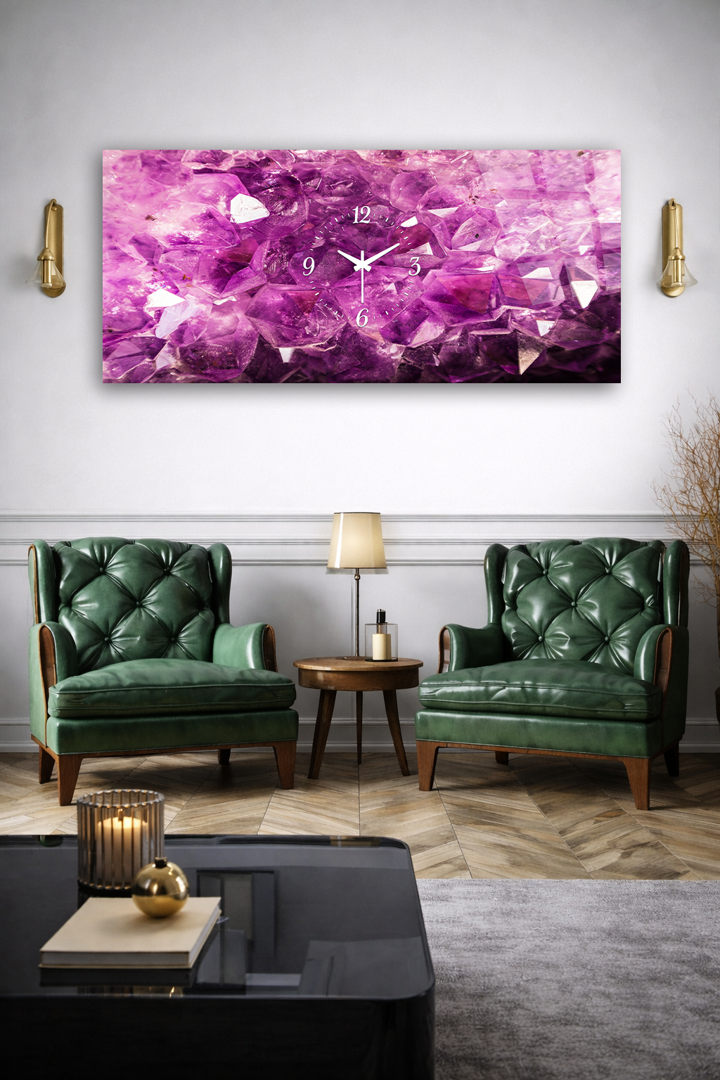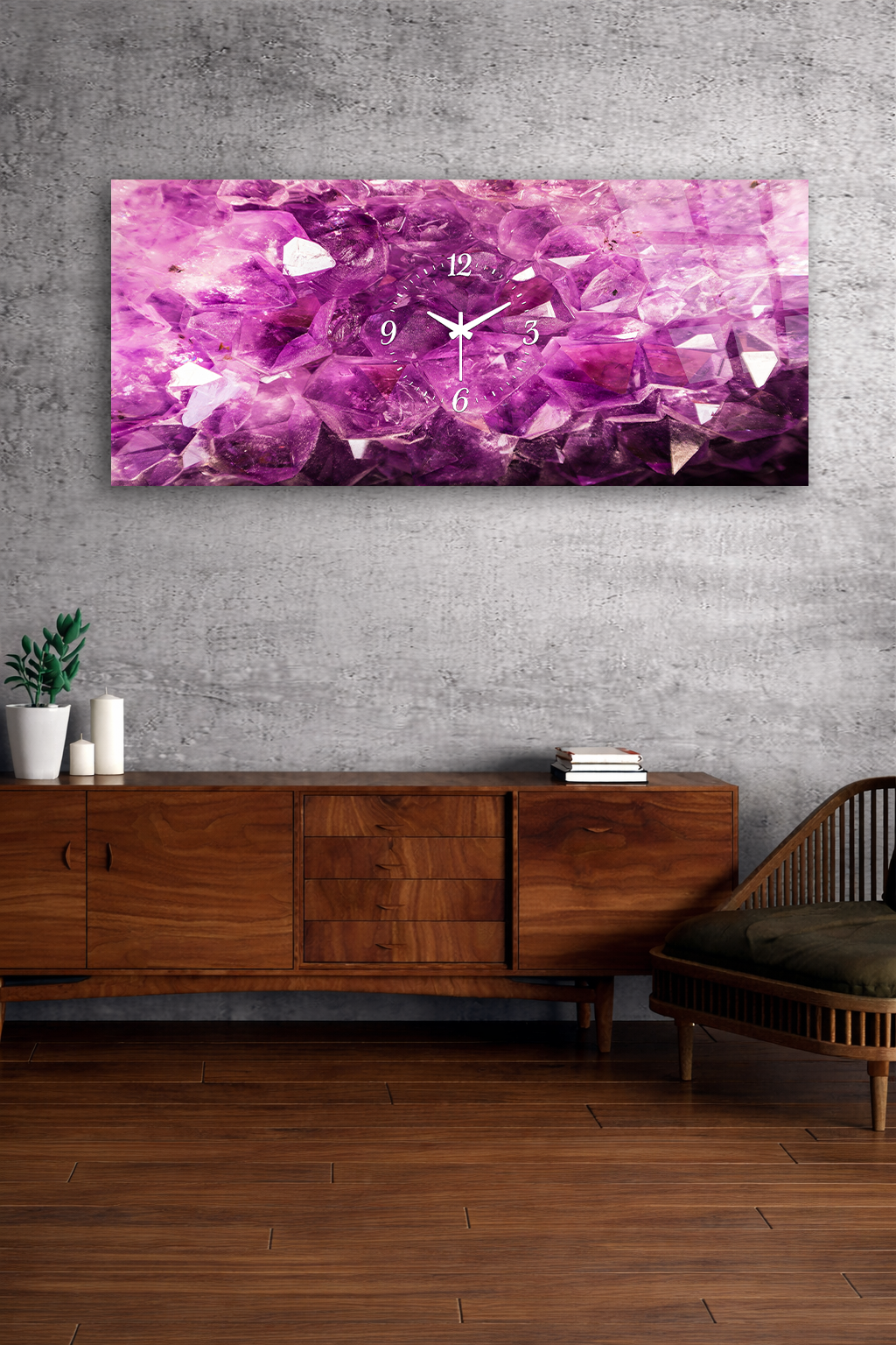 KIRILMAZ CAM DUVAR SAATİ , HEM TABLO HEM SAAT PEMPE KRİSTALLER SOYUT TASARIM EV OFİS HEDİYESİ