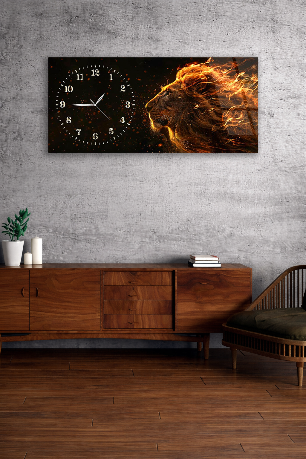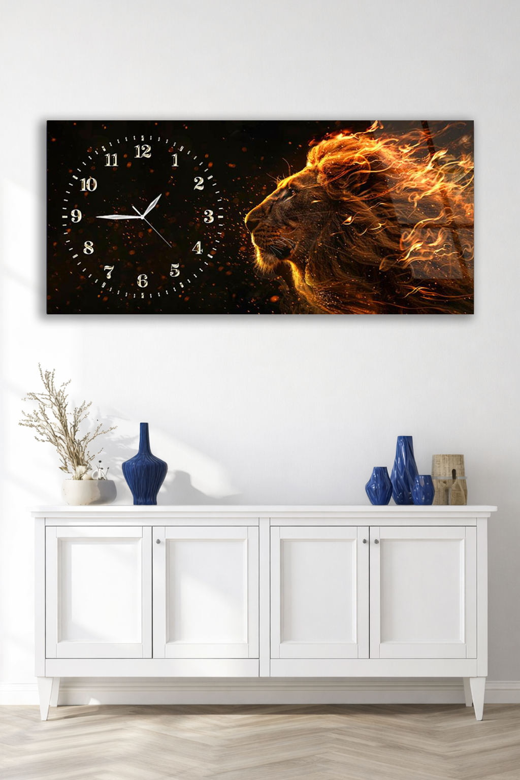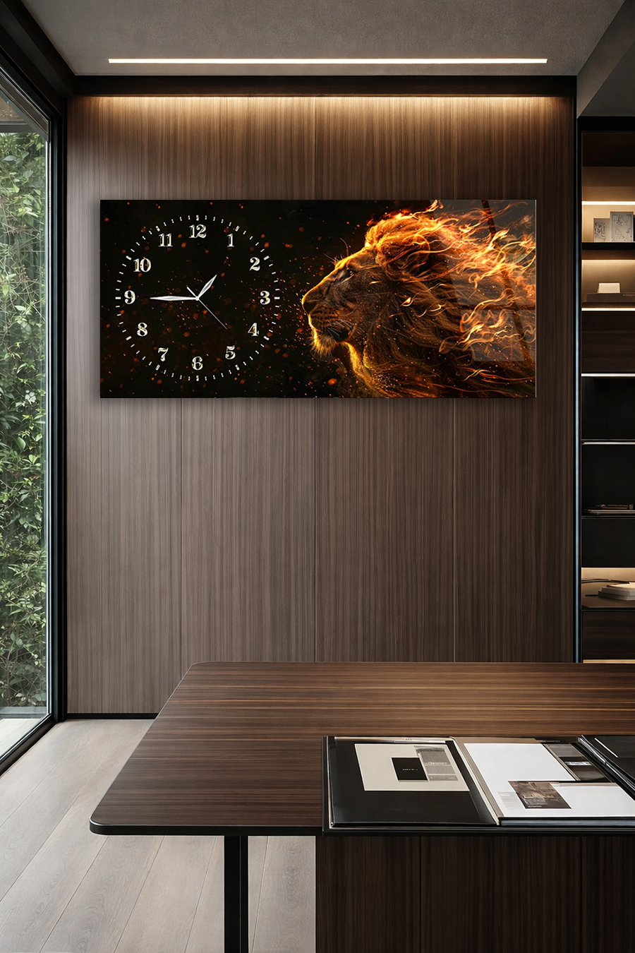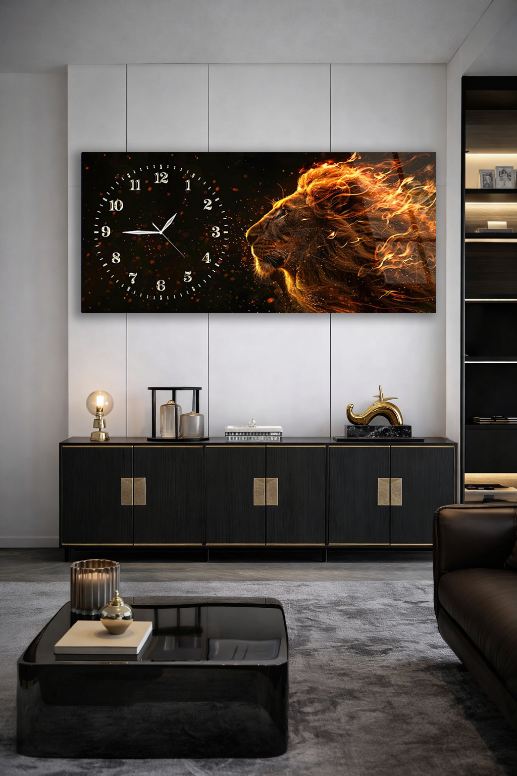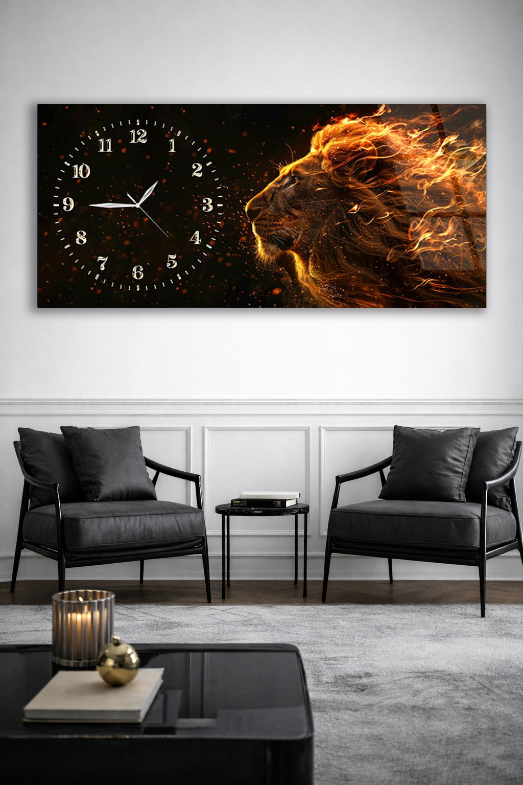 KIRILMAZ CAM DUVAR SAATİ , HEM TABLO HEM SAAT PREMIUM ASLAN CAM DUVAR SAATİ OFİS HEDİYESİ