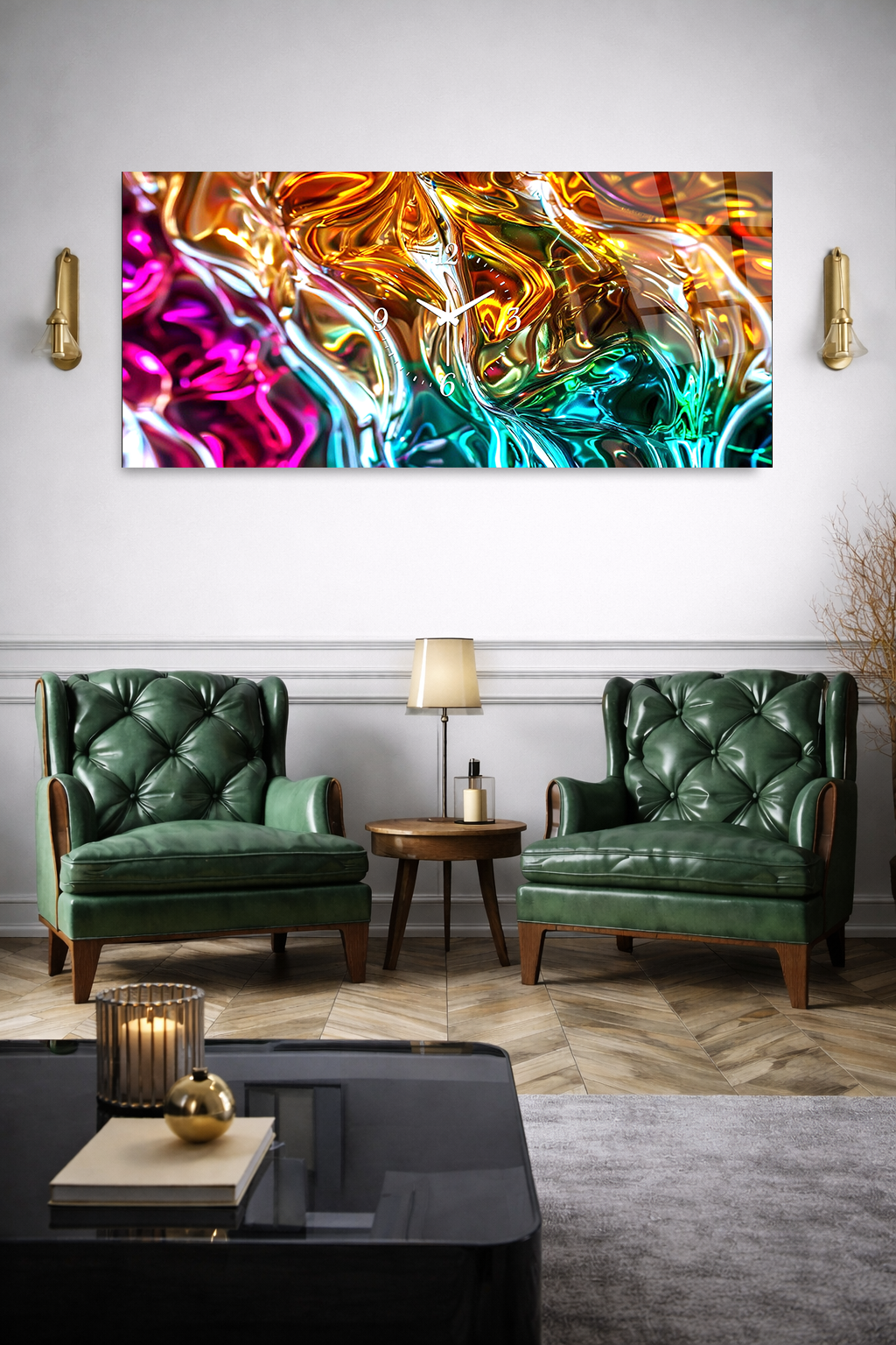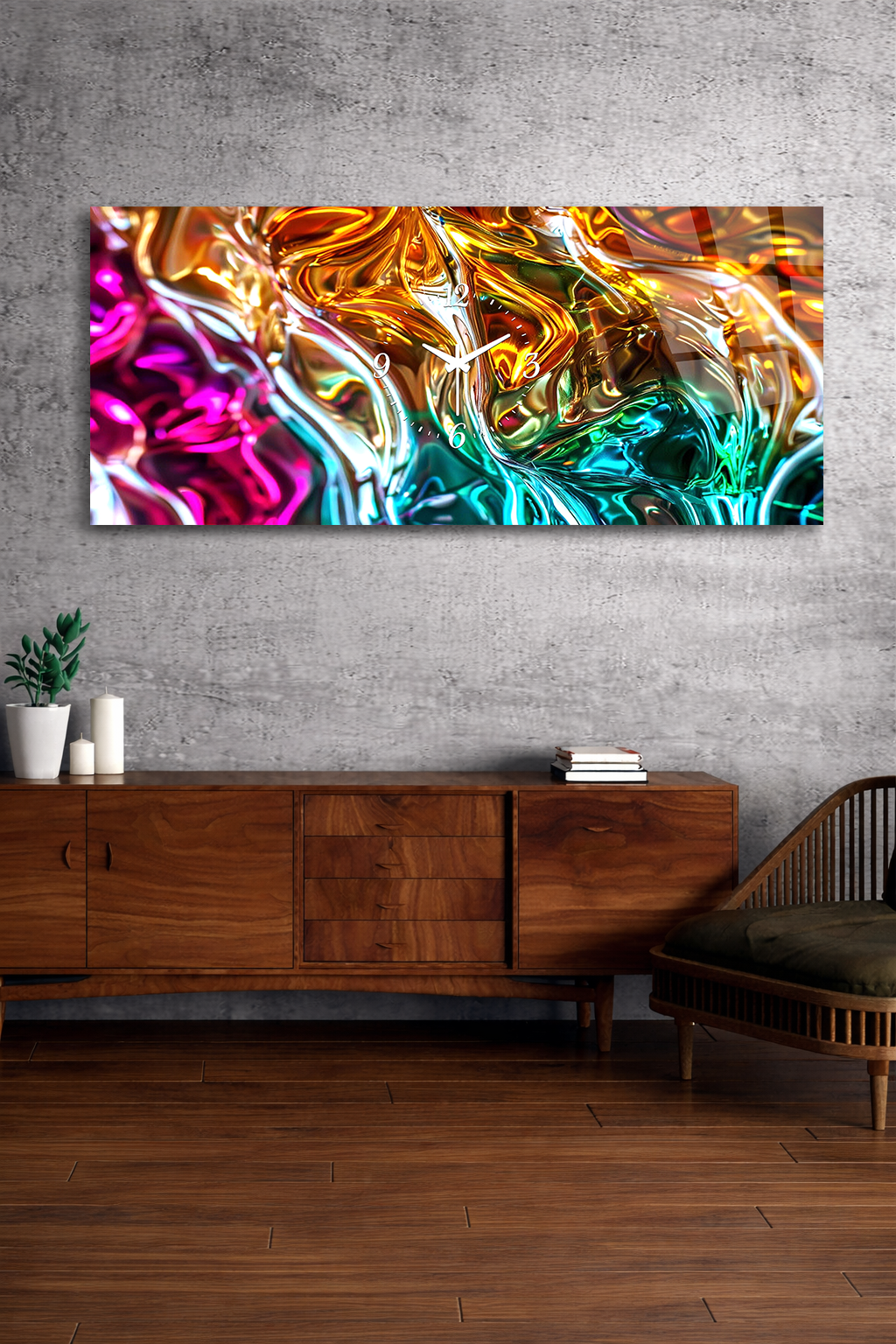 Hem şık bir tablo hem de işlevsel bir saat olarak tasarlanan bu özel ürün, ev ve ofis dekorasyonuna modern bir dokunuş katar.