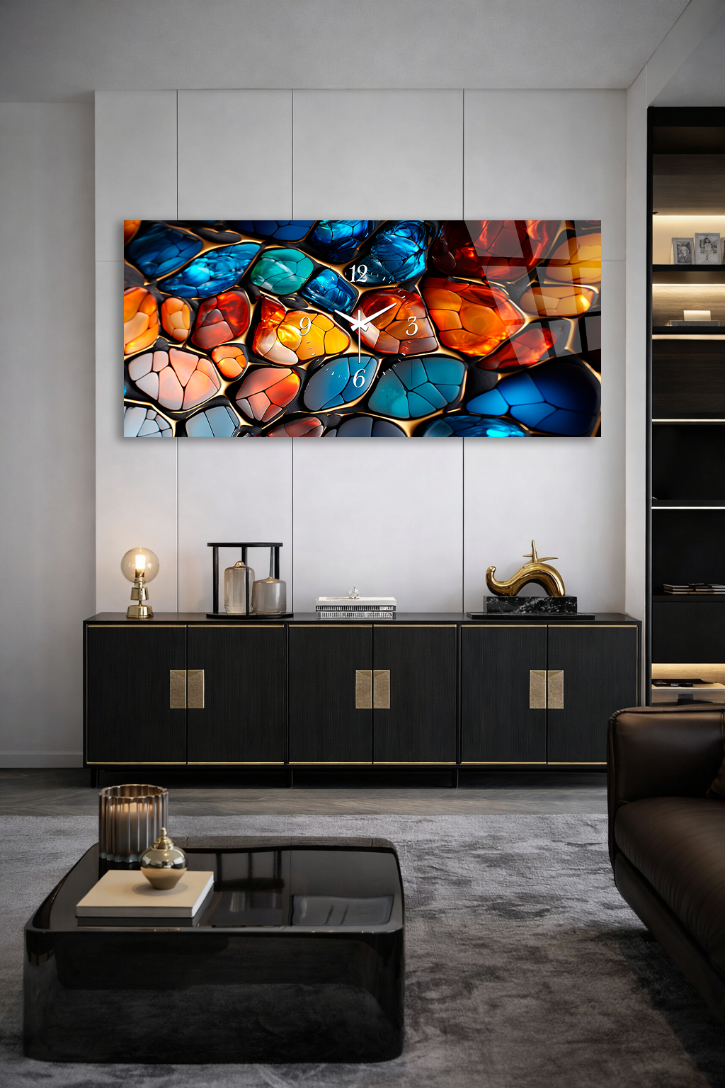 Hem şık bir tablo hem de işlevsel bir saat olarak tasarlanan bu özel ürün, ev ve ofis dekorasyonuna modern bir dokunuş katar.