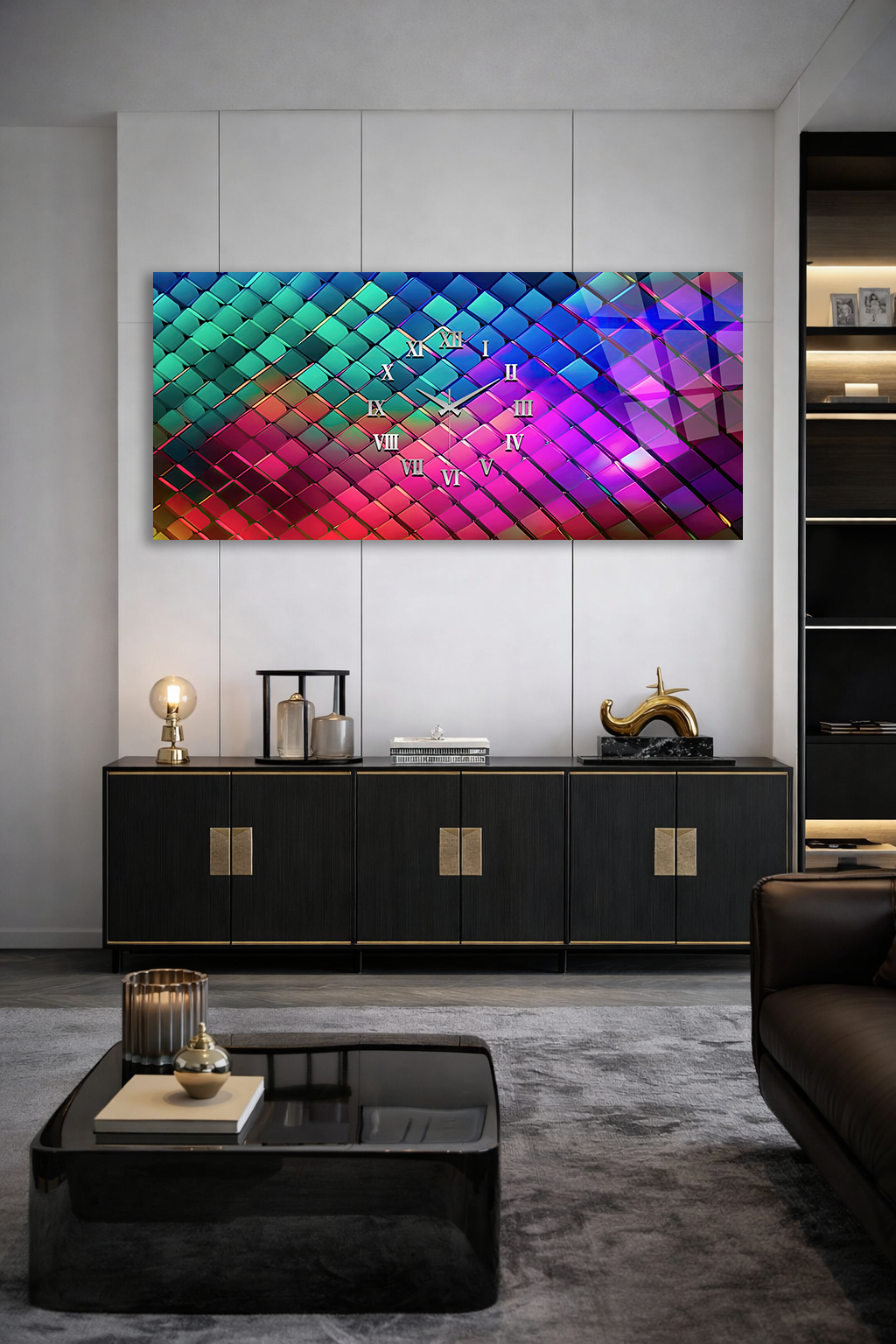 Hem şık bir tablo hem de işlevsel bir saat olarak tasarlanan bu özel ürün, ev ve ofis dekorasyonuna modern bir dokunuş katar.
