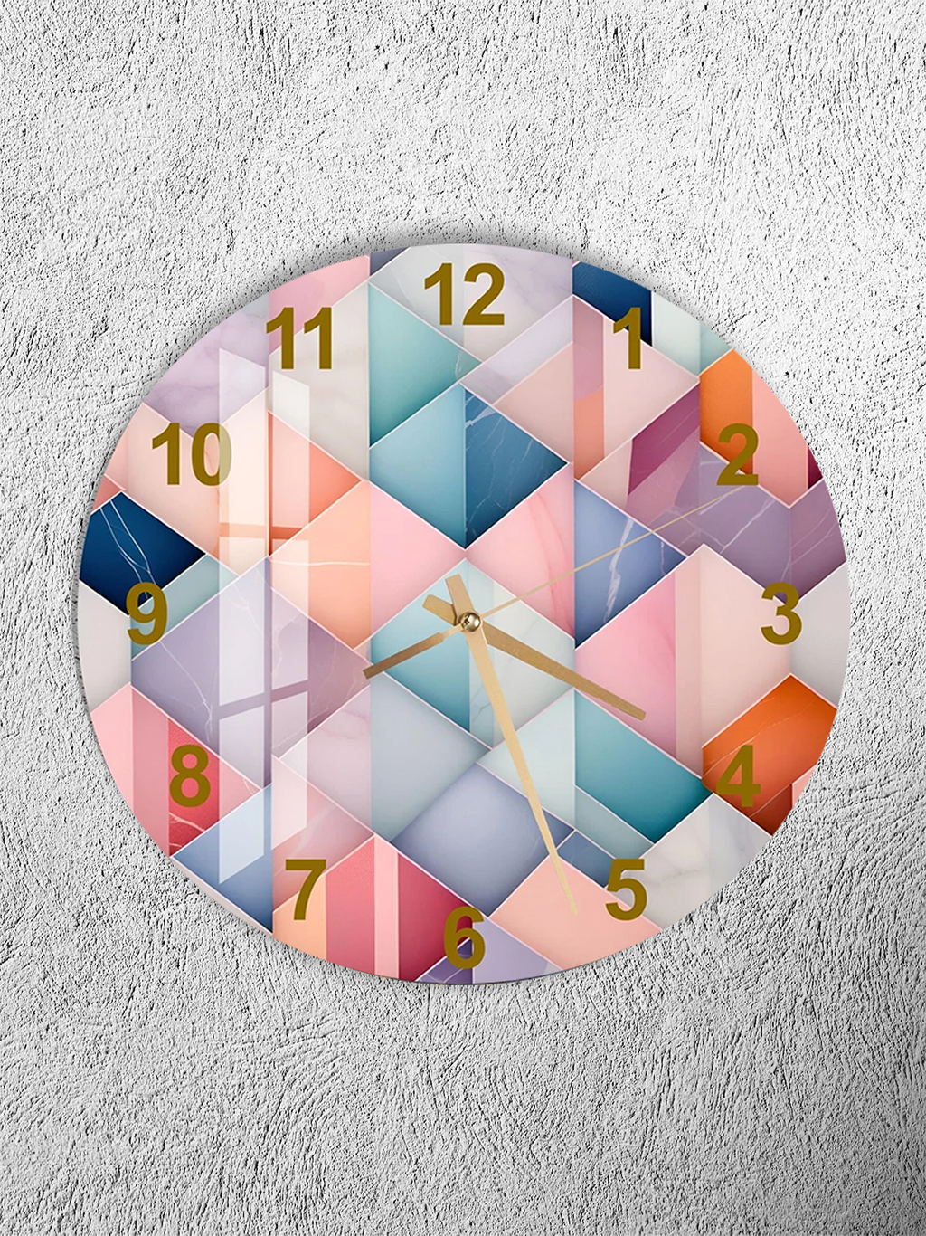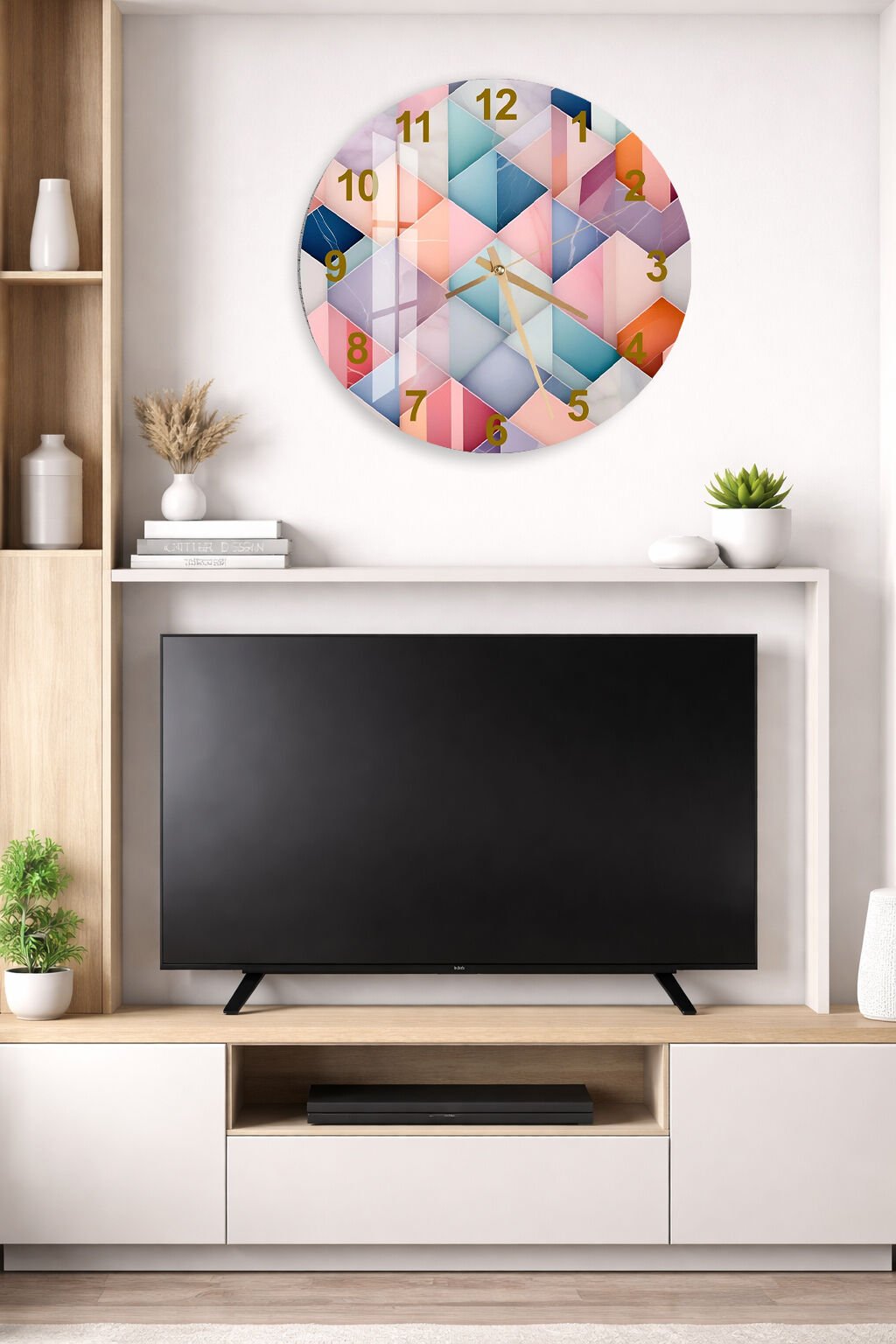 KIRILMAZ CAM DUVAR SAATİ, HEM TABLO HEM SAAT RENKLİ GEOMETRİK MOZAİK EV OFİS HEDİYESİ