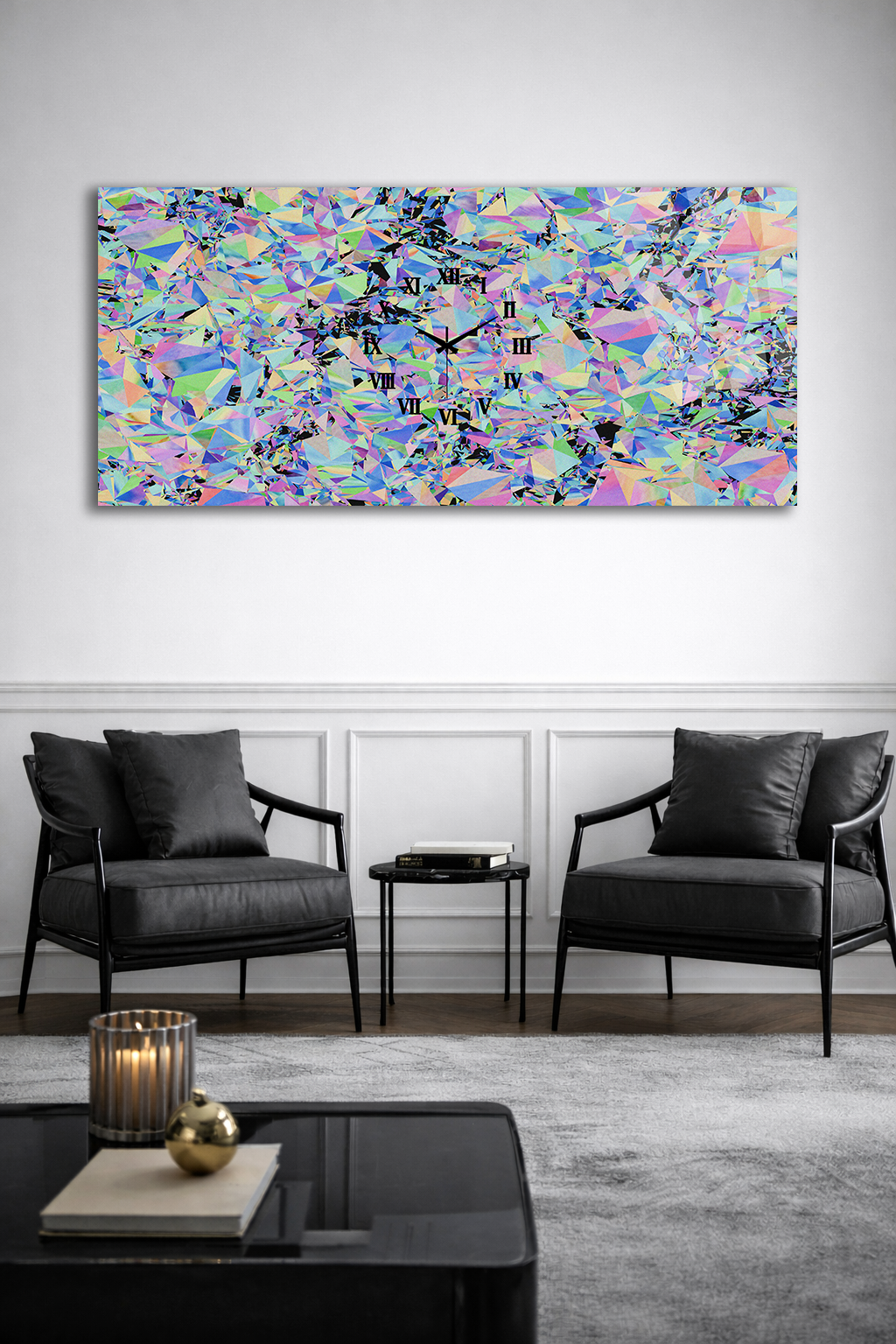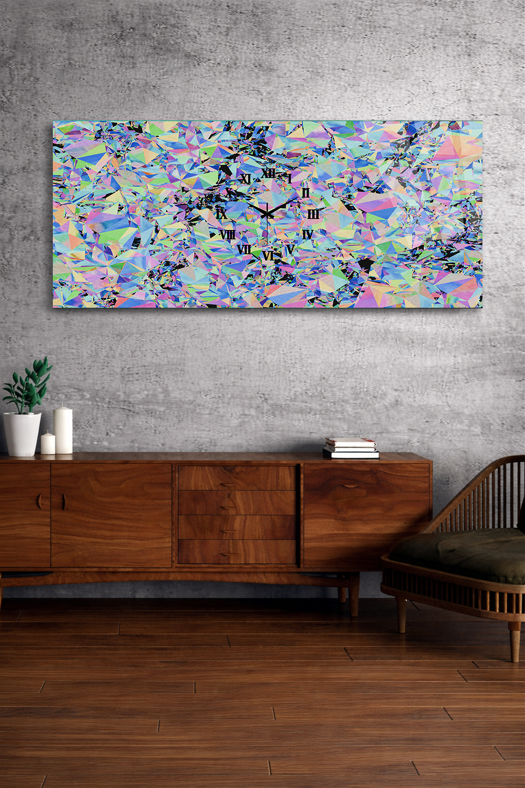 KIRILMAZ CAM DUVAR SAATİ , HEM TABLO HEM SAAT RENKLİ GEOMETRİK PRİZMA DESEN EV OFİS HEDİYESİ