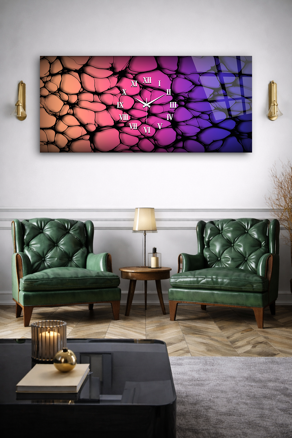 KIRILMAZ CAM DUVAR SAATİ , HEM TABLO HEM SAAT RENKLİ HÜCRE DESEN MODERN EV OFİS HEDİYESİ