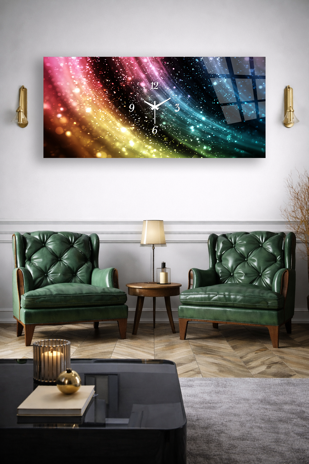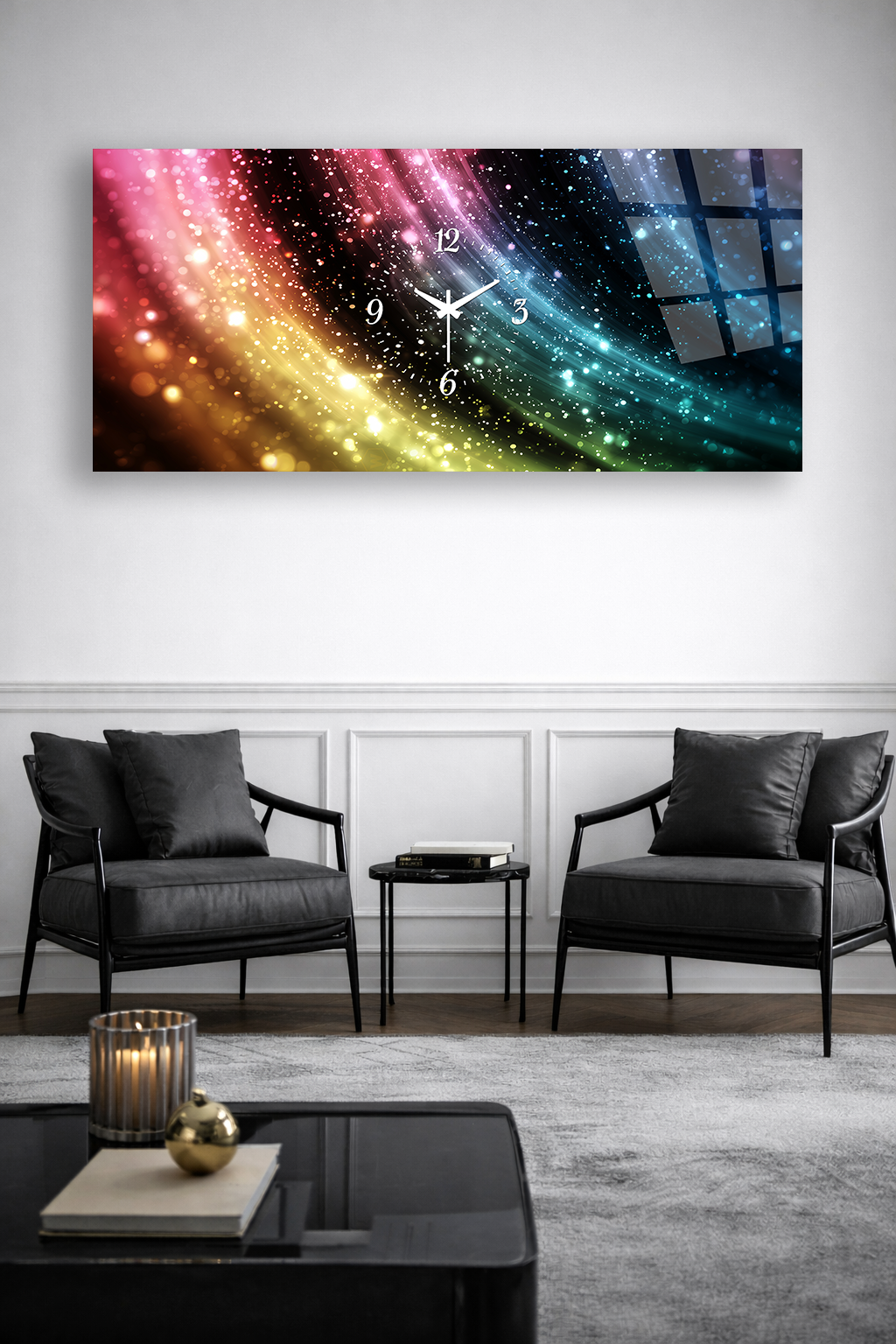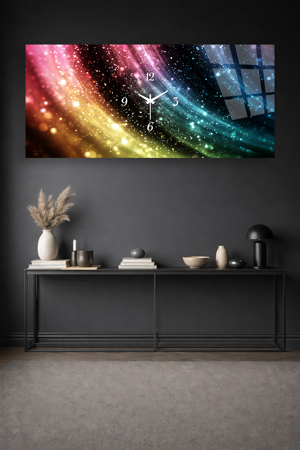 KIRILMAZ CAM DUVAR SAATİ , HEM TABLO HEM SAAT RENKLİ IŞIK EFEKTLİ MODERN EV OFİS HEDİYESİ