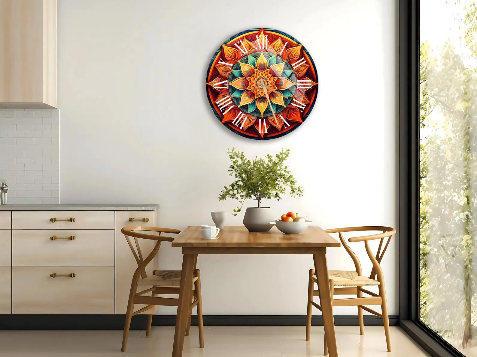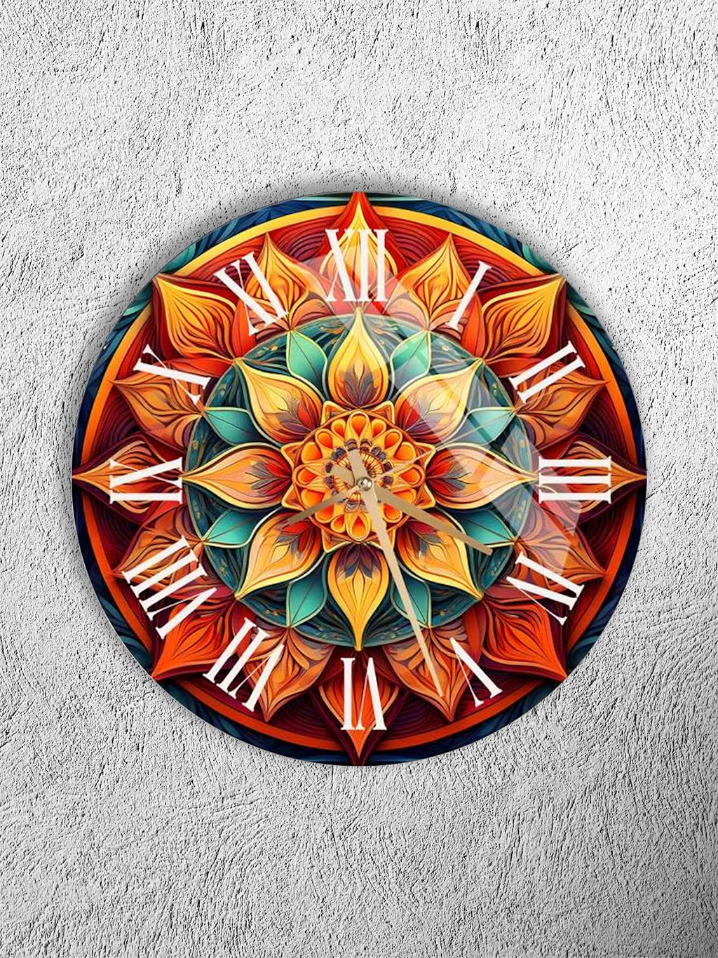 KIRILMAZ CAM DUVAR SAATİ, HEM TABLO HEM SAAT RENKLİ MANDALA ETNİK DESEN EV OFİS HEDİYESİ