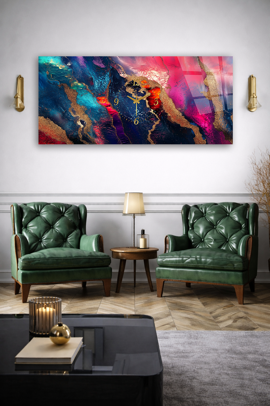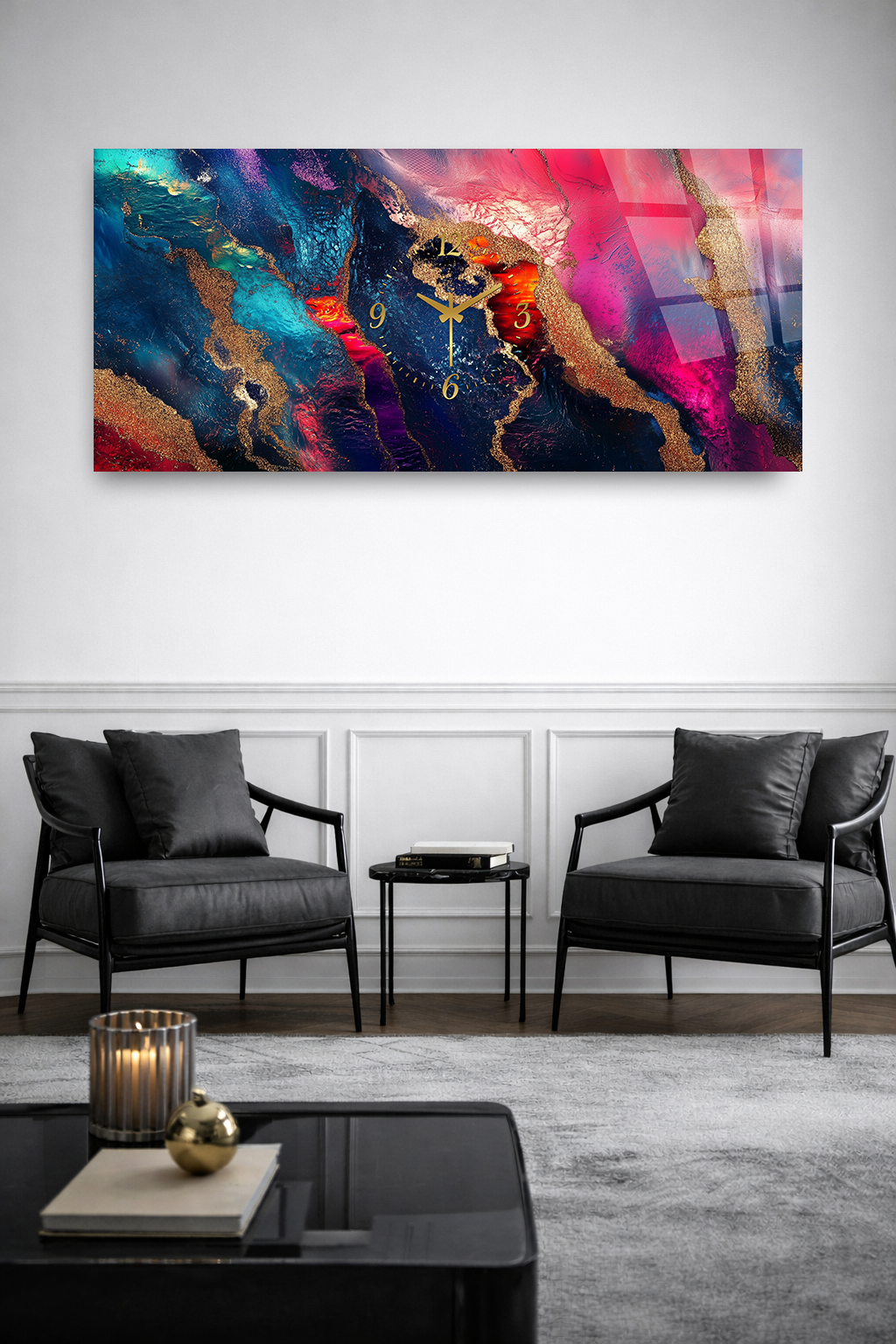 KIRILMAZ CAM DUVAR SAATİ , HEM TABLO HEM SAAT RENKLİ MERMER SOYUT SANAT EV OFİS HEDİYESİ