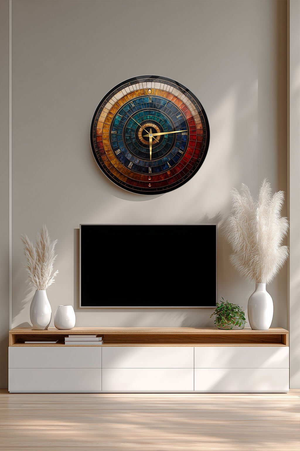 KIRILMAZ CAM DUVAR SAATİ, HEM TABLO HEM SAAT RENKLİ MOZAYİK KLASİK ROMA RAKAMLI EV OFİS HEDİYESİ