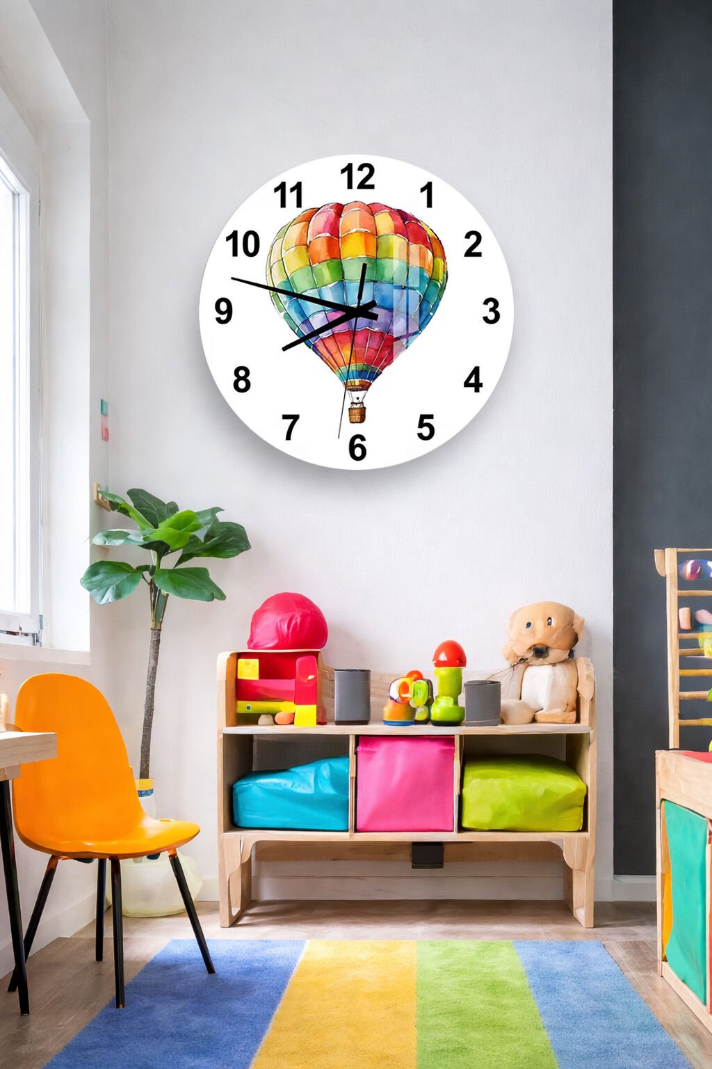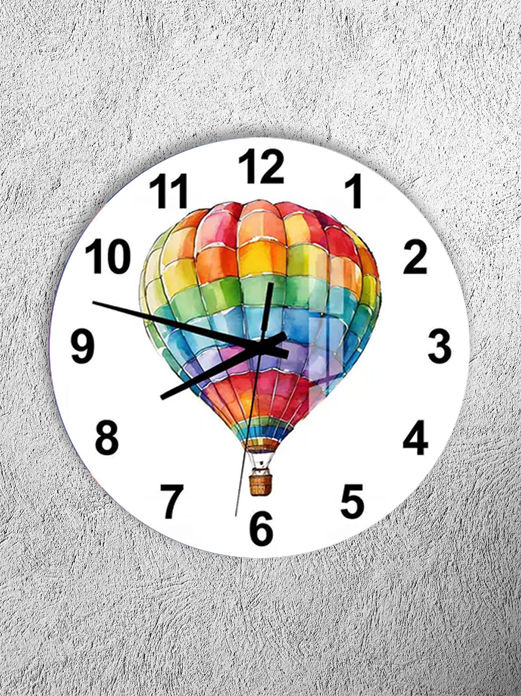 KIRILMAZ CAM DUVAR SAATİ, HEM TABLO HEM SAAT RENKLİ SICAK HAVA BALONU ÇOCUK ODASI EV OFİS HEDİYESİ