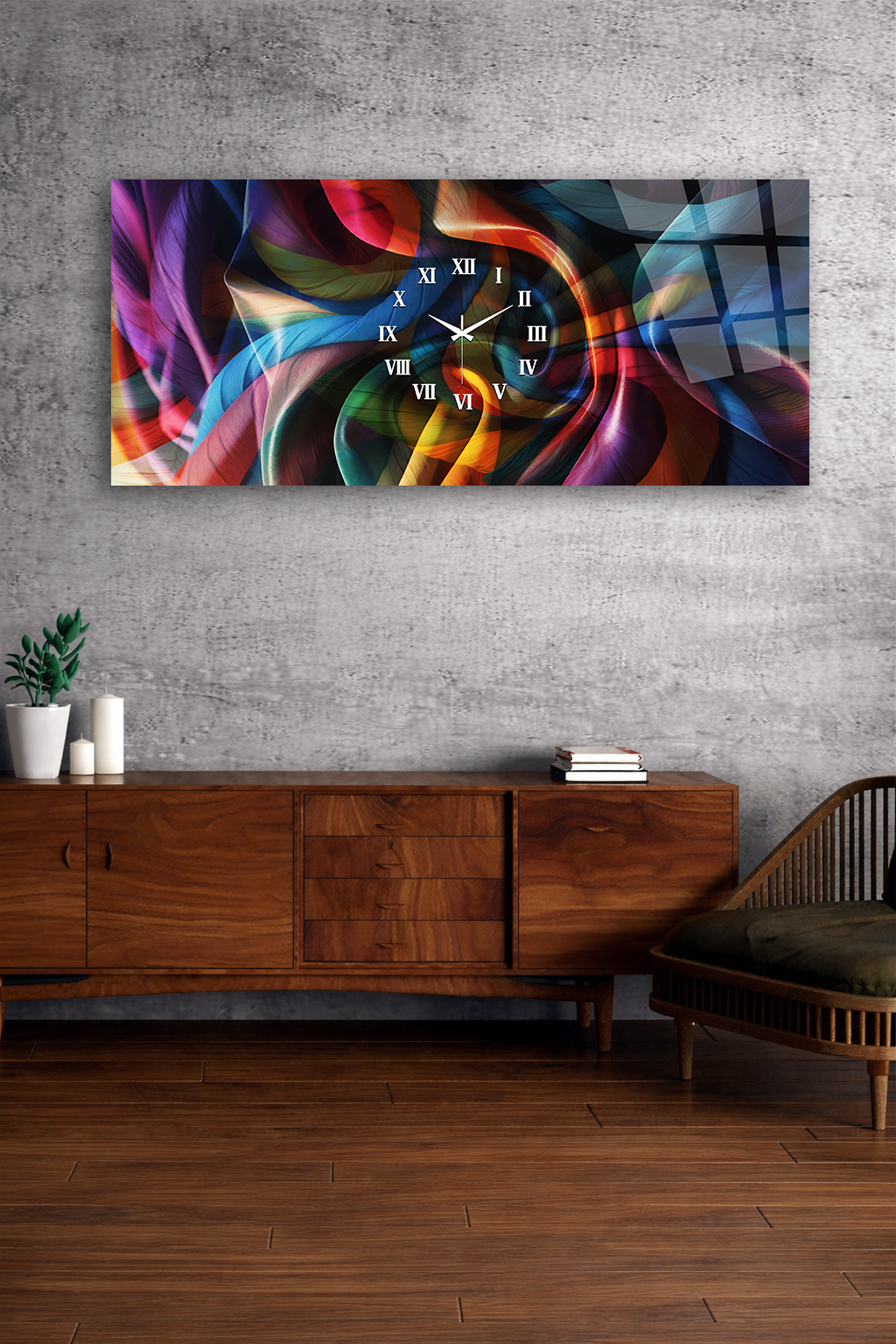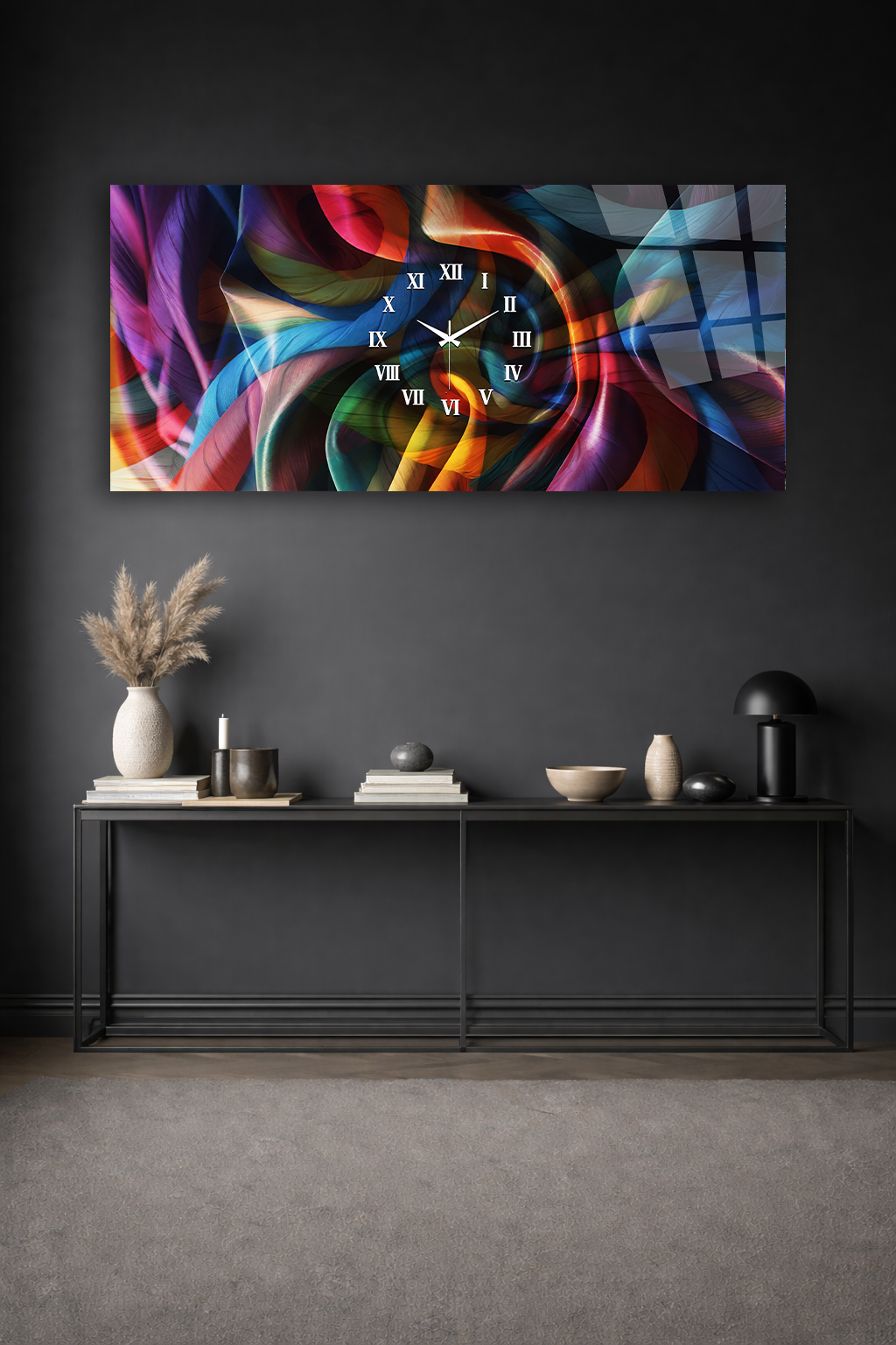 Hem şık bir tablo hem de işlevsel bir saat olarak tasarlanan bu özel ürün, ev ve ofis dekorasyonuna modern bir dokunuş katar.