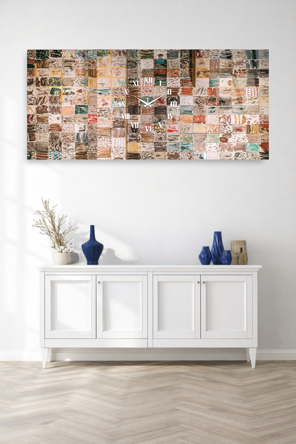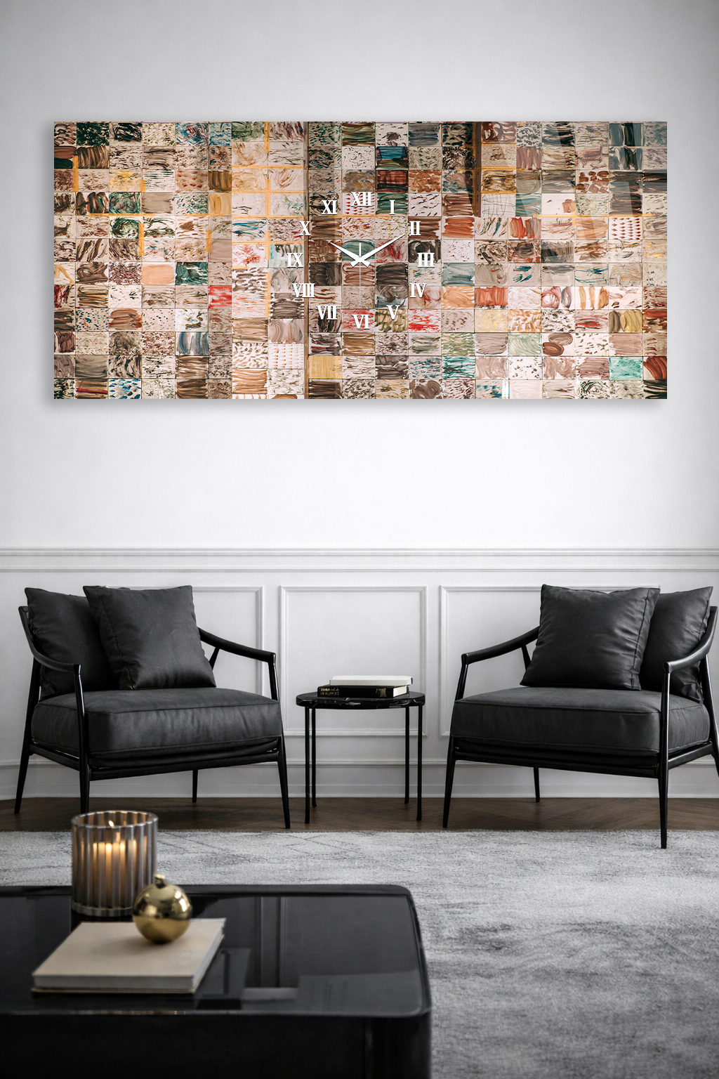 Hem şık bir tablo hem de işlevsel bir saat olarak tasarlanan bu özel ürün, ev ve ofis dekorasyonuna modern bir dokunuş katar.