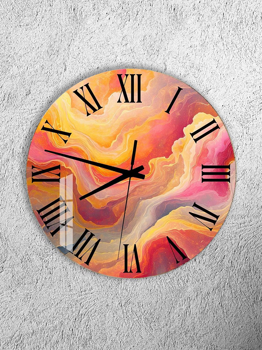 KIRILMAZ CAM DUVAR SAATİ, HEM TABLO HEM SAAT SICAK TON SOYUT SANATSAL TASARIM EV OFİS HEDİYESİ
