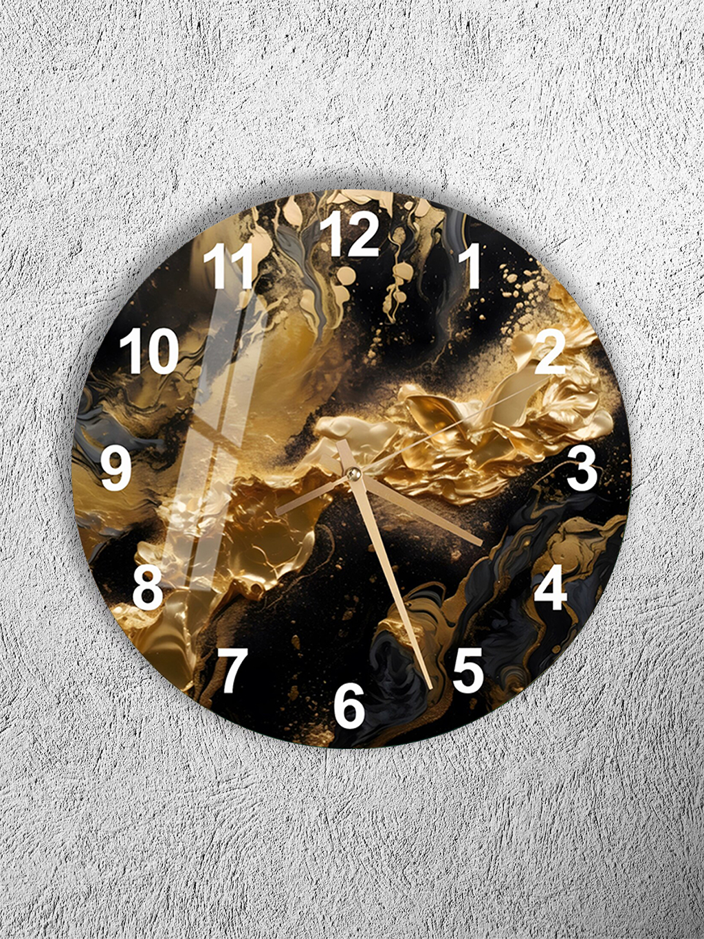KIRILMAZ CAM DUVAR SAATİ, HEM TABLO HEM SAAT SİYAH ALTIN MERMER AKIŞKAN TASARIM EV OFİS HEDİYESİ
