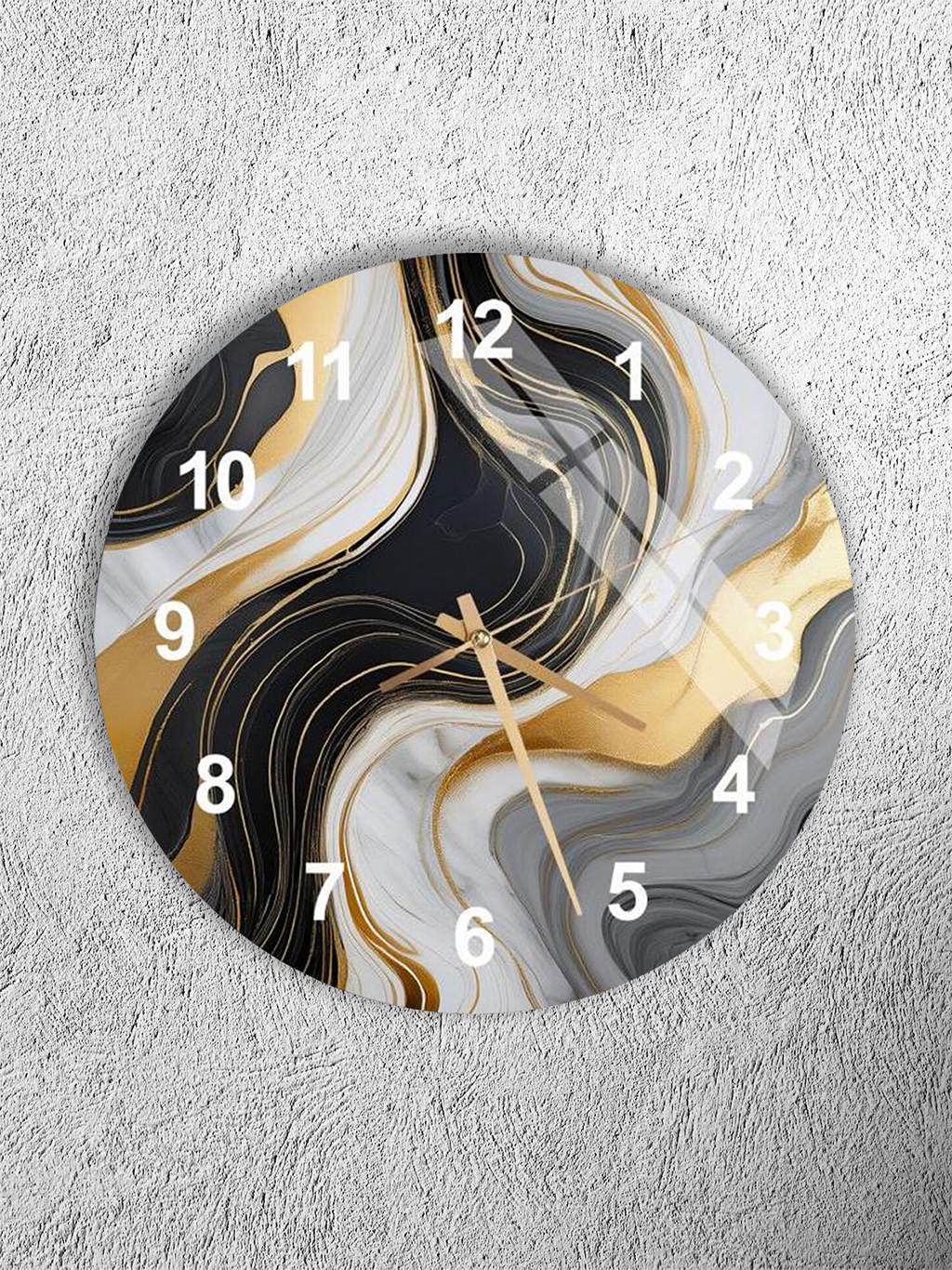 KIRILMAZ CAM DUVAR SAATİ, HEM TABLO HEM SAAT SİYAH BEYAZ ALTIN SOYUT DESEN EV OFİS HEDİYESİ