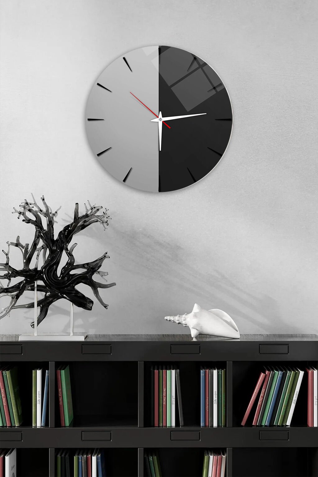 KIRILMAZ CAM DUVAR SAATİ, HEM TABLO HEM SAAT SİYAH BEYAZ MİNİMAL MODERN TASARIM EV OFİS HEDİYESİ