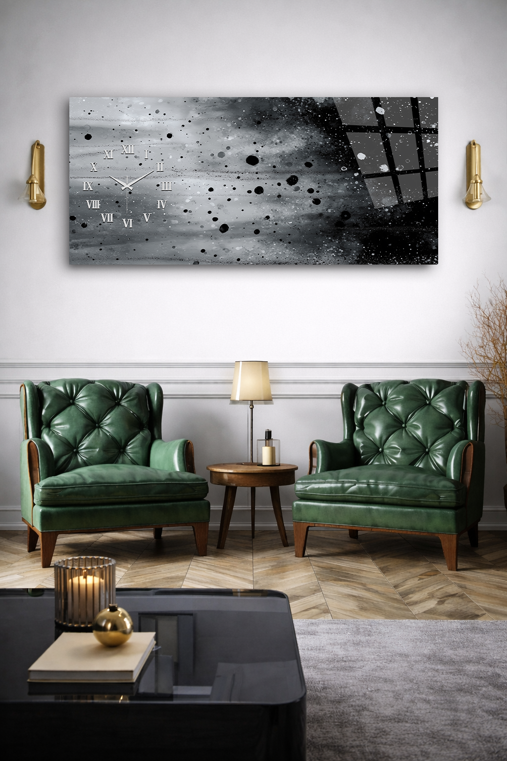 KIRILMAZ CAM DUVAR SAATİ , HEM TABLO HEM SAAT SİYAH BEYAZ MODERN SOYUT EV OFİS HEDİYESİ