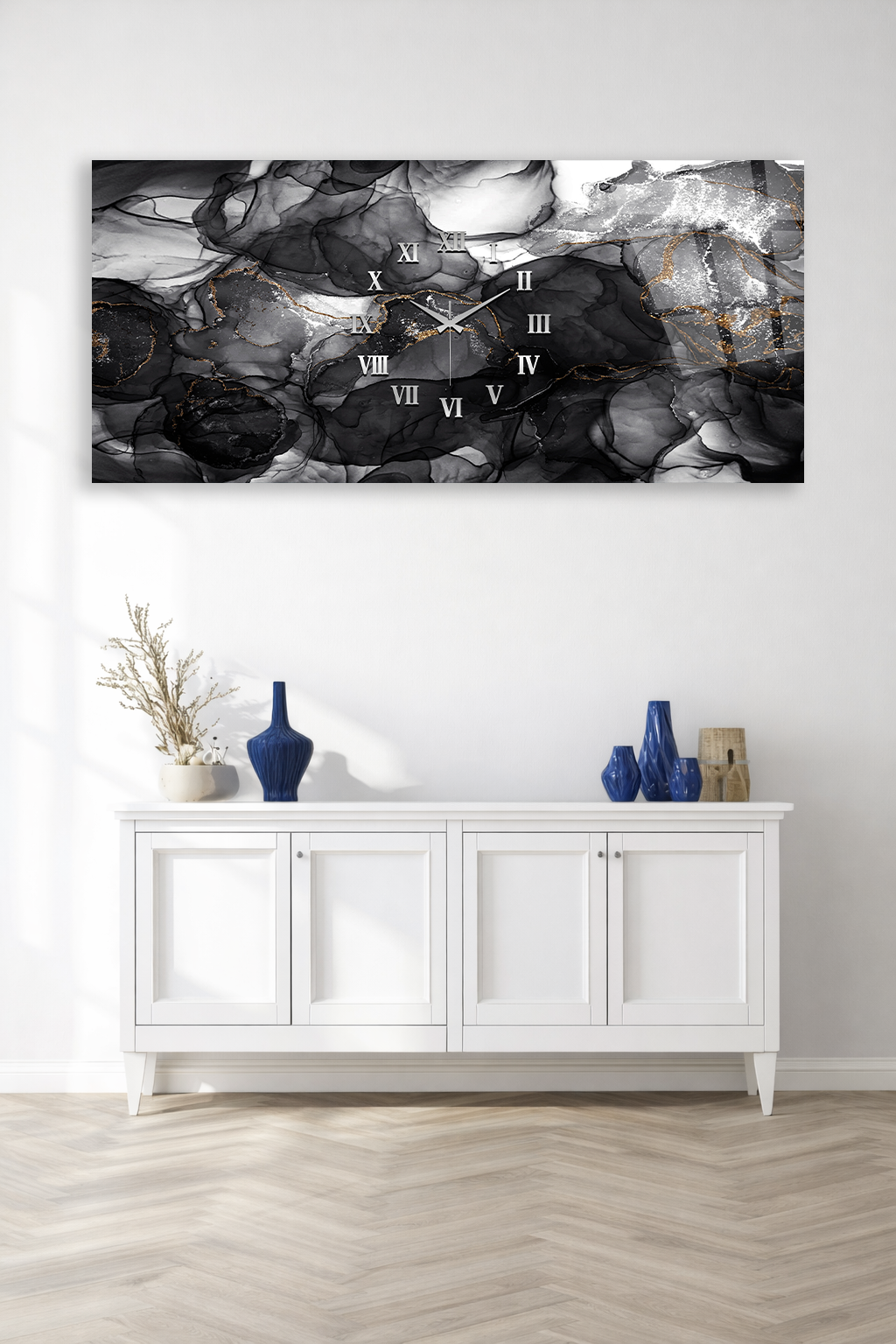 Hem şık bir tablo hem de işlevsel bir saat olarak tasarlanan bu özel ürün, ev ve ofis dekorasyonuna modern bir dokunuş katar.