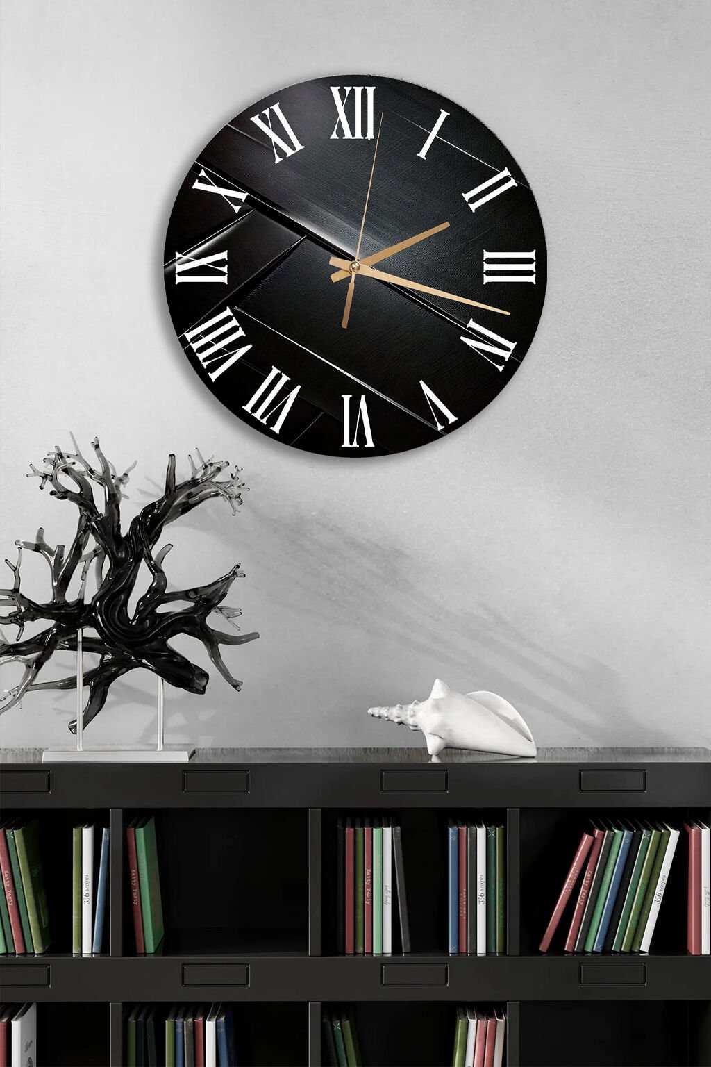KIRILMAZ CAM DUVAR SAATİ, HEM TABLO HEM SAAT SİYAH MODERN DOKU EV OFİS HEDİYESİ