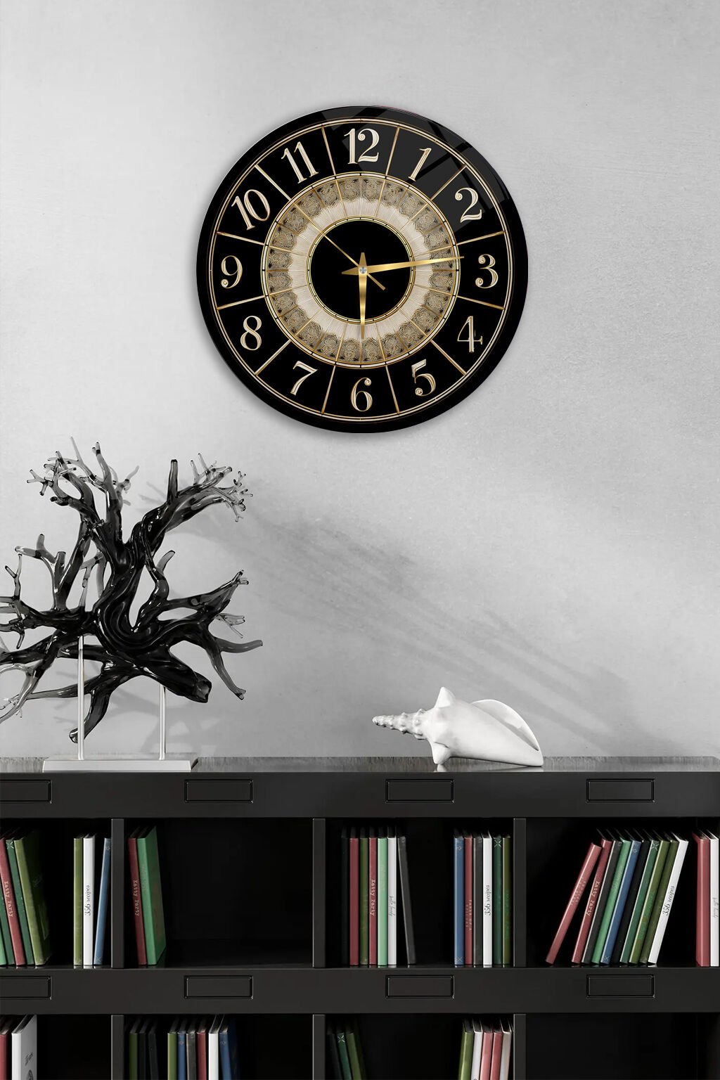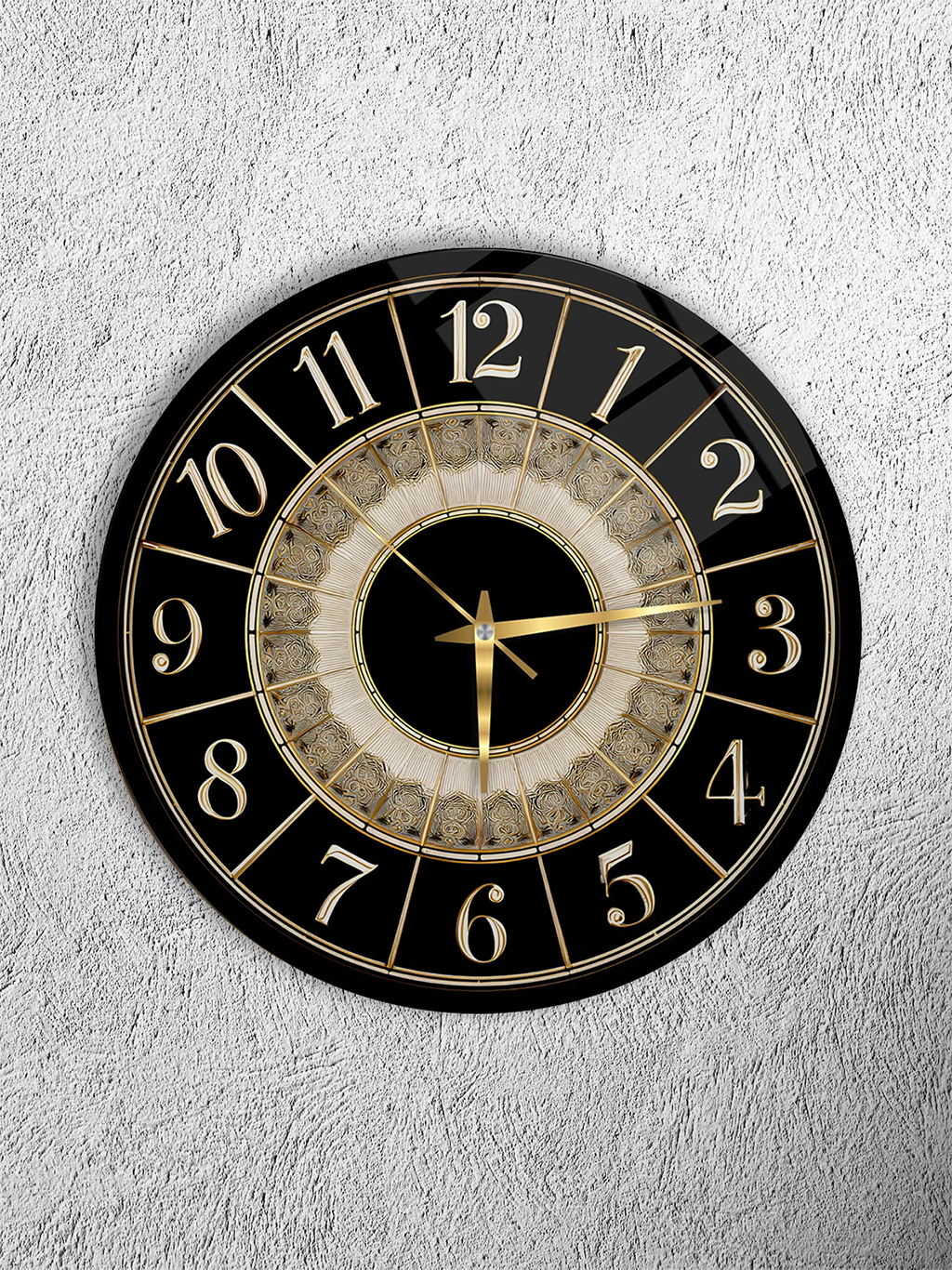 KIRILMAZ CAM DUVAR SAATİ, HEM TABLO HEM SAAT SİYAH ZEMİN GOLD KLASİK ROMA RAKAMLI LÜKS TASARIM EV OFİS HEDİYESİ